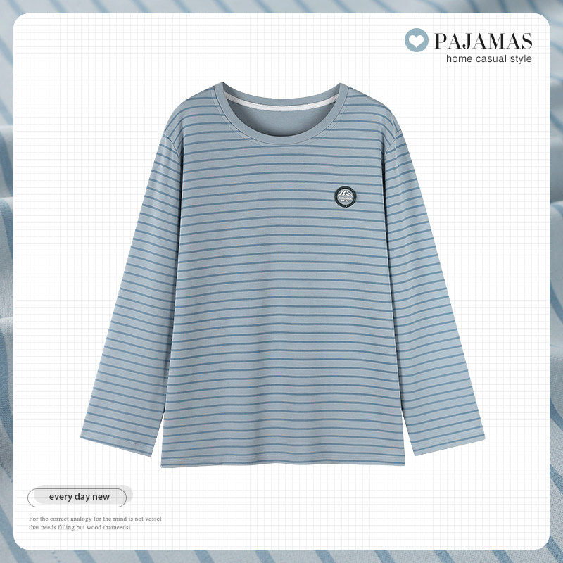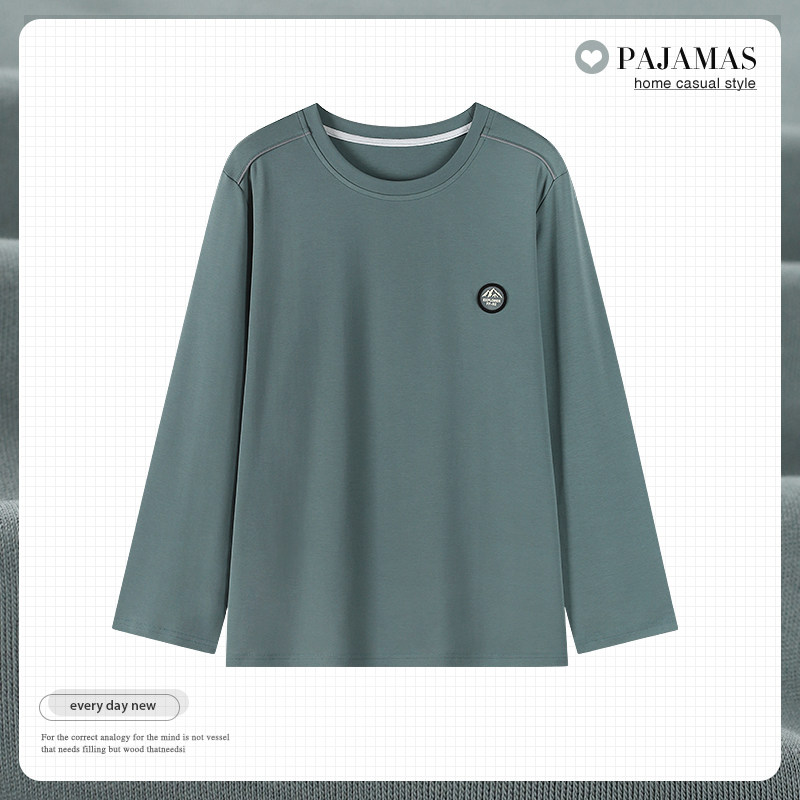 男式简约款长袖T恤可外穿男款休闲薄款纯棉睡衣男式圆领宽松上衣
