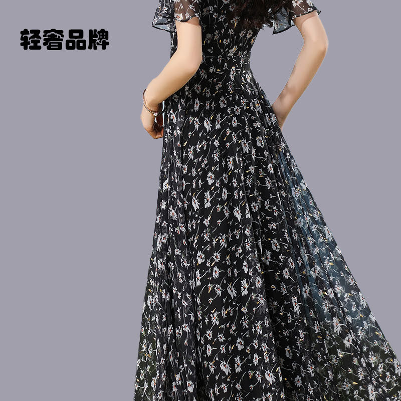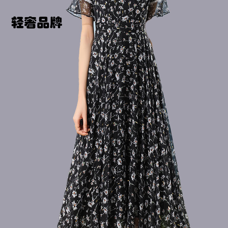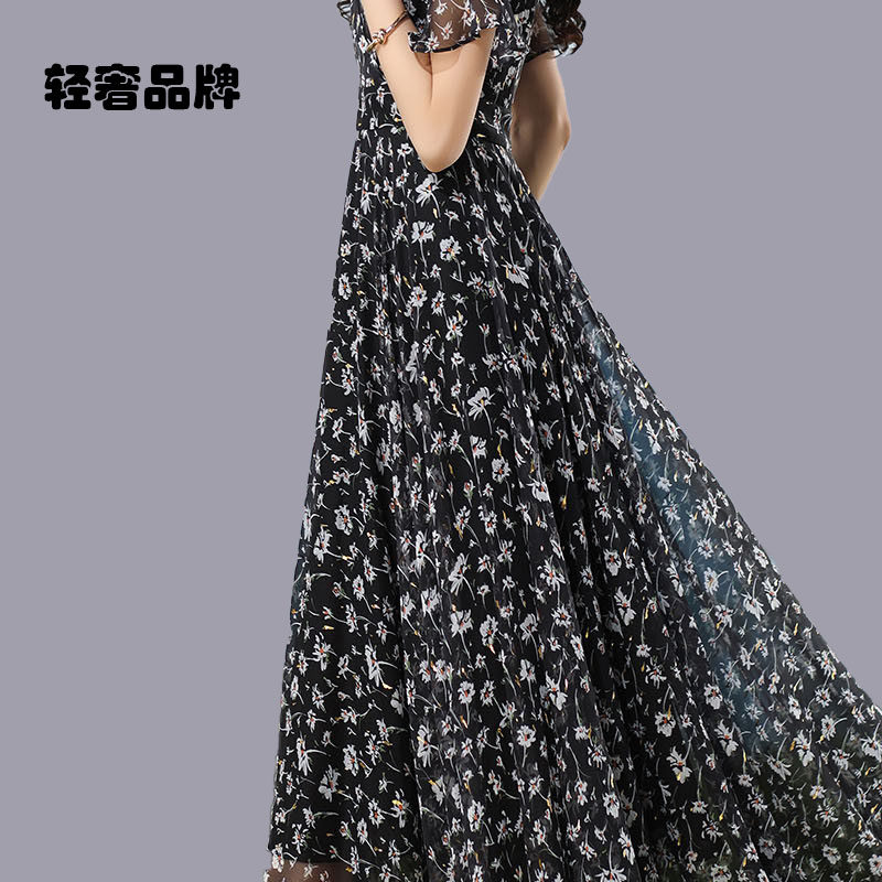 朗姿约定碎花连衣裙女2025夏季新款收腰仙气超仙森系超长裙到脚踝