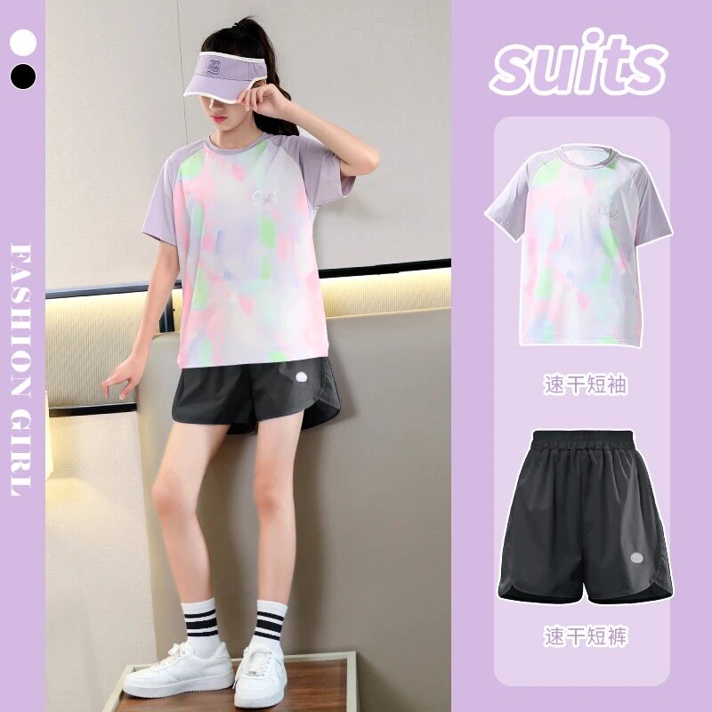 儿童速干运动套装女童夏季薄款2026新款短袖短裤跑步服训练女大童