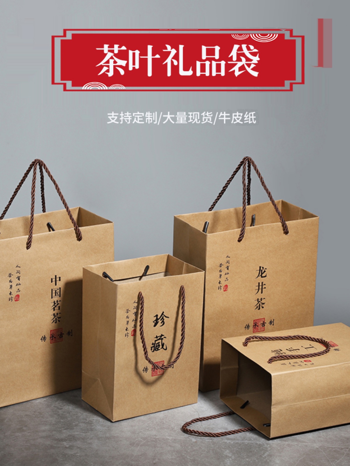 牛皮纸手提袋阿胶糕包装袋纯手工高级食品定制高级袋春节礼品袋子