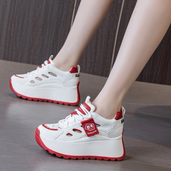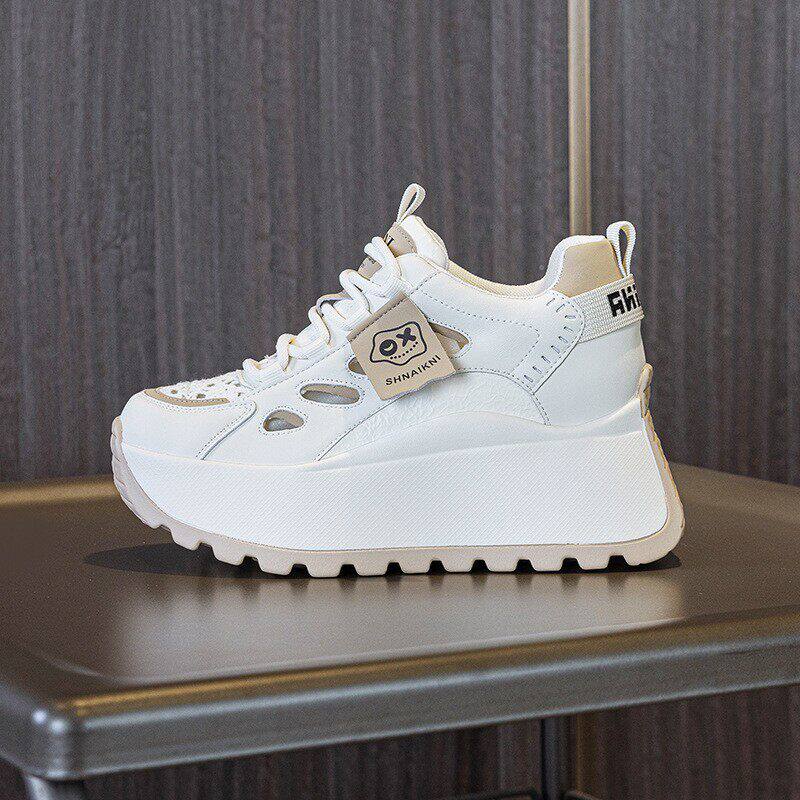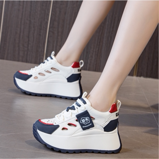 夏季镂空透气凉鞋真皮内增高网鞋8CM小个子运动休闲网纱小白鞋女