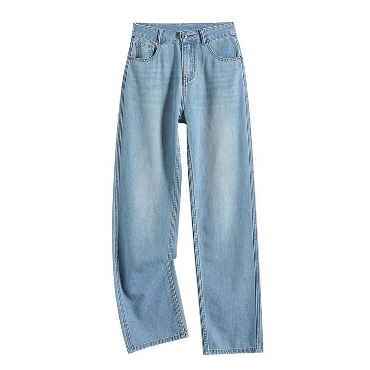 浅色莱赛尔天丝直筒牛仔裤女2026新款夏季薄款高腰垂感百搭阔腿裤
