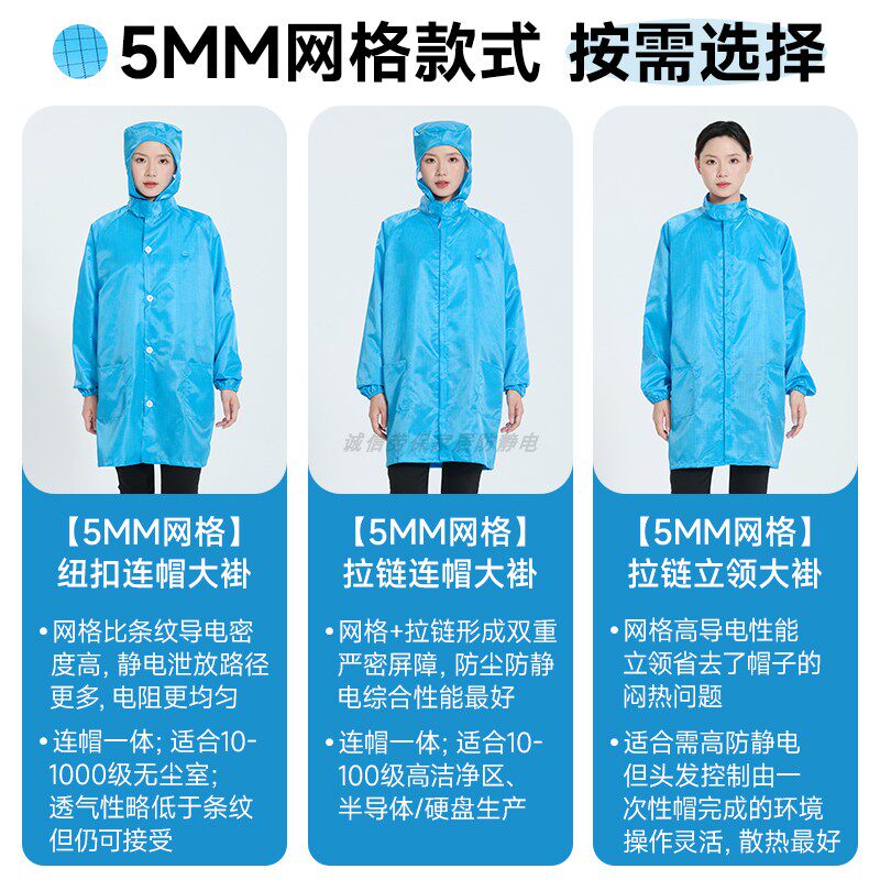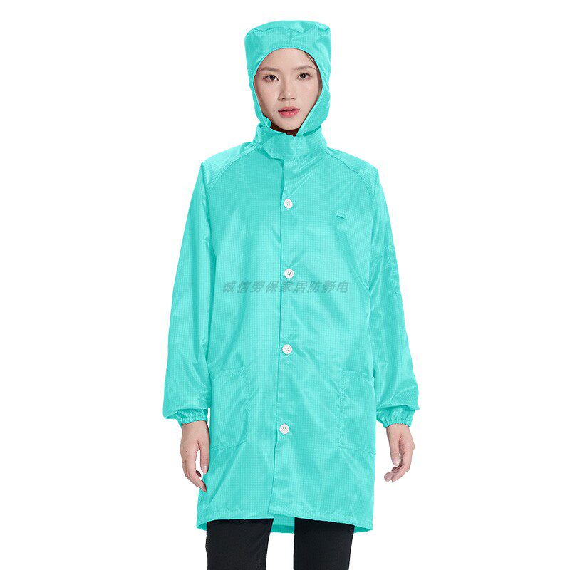 防尘工作服连帽大褂真防静电可过电子门0.5网格绿色无尘衣防护服