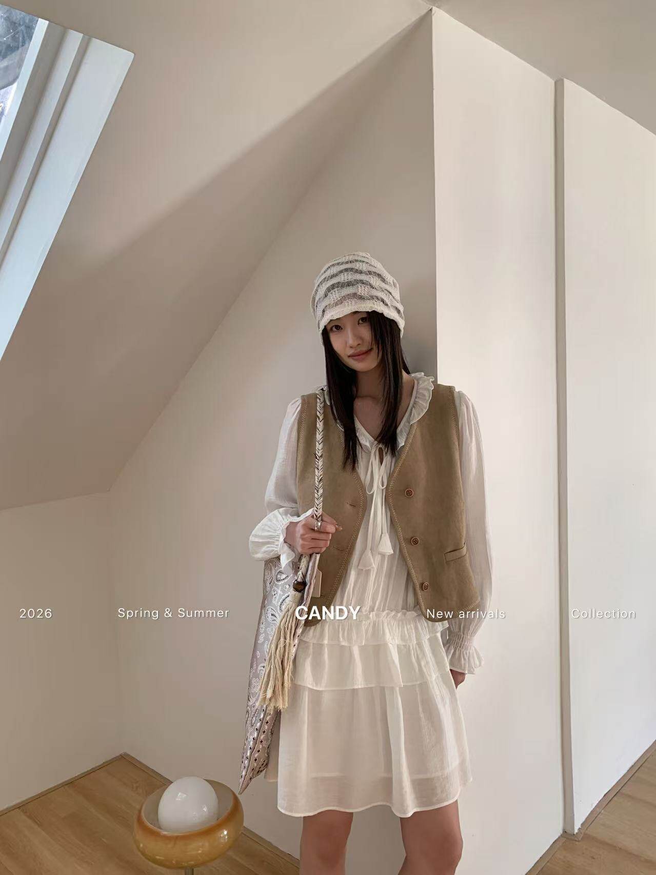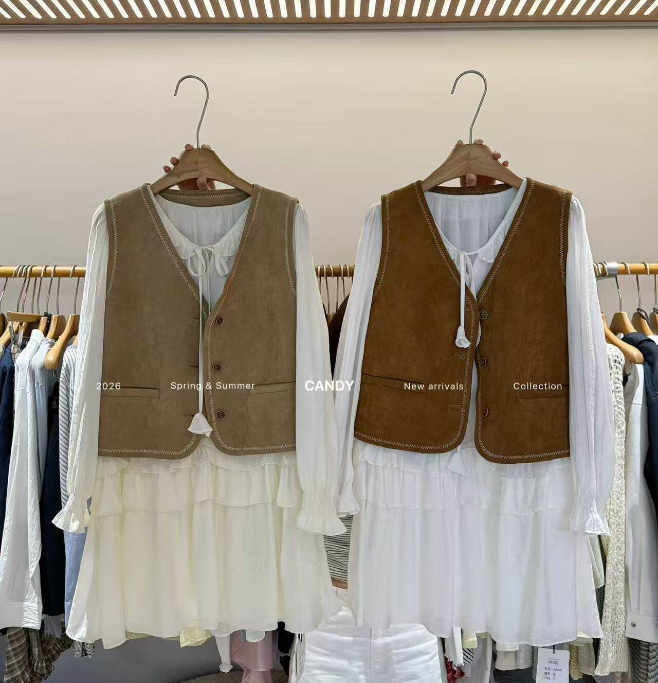2026春季新款韩系时尚荷叶边油木风衬衫连身裙套装女高级感