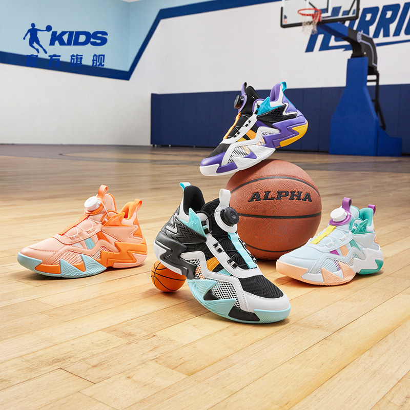 乔丹儿童篮球鞋男大童鞋子2026新款童鞋旋钮扣网面专业男童运动鞋