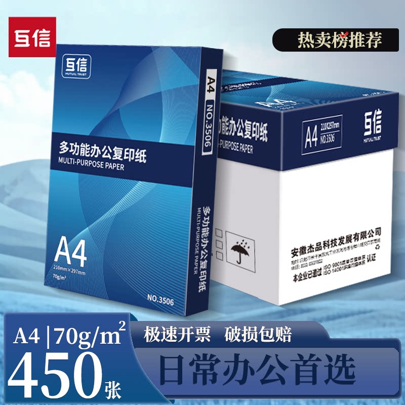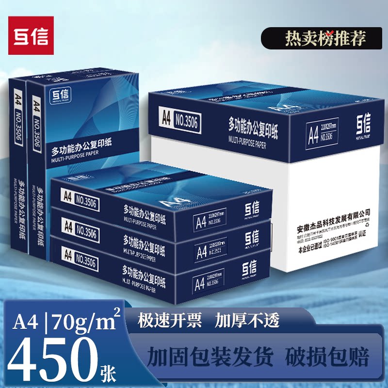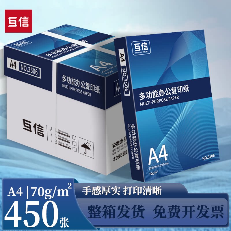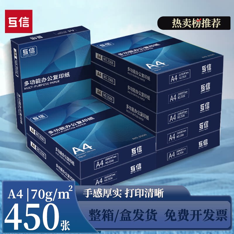 互信A4纸打印复印纸70g单包450张一包整箱5包办公用品a4打印白纸草稿纸学生用免费包邮便宜批发