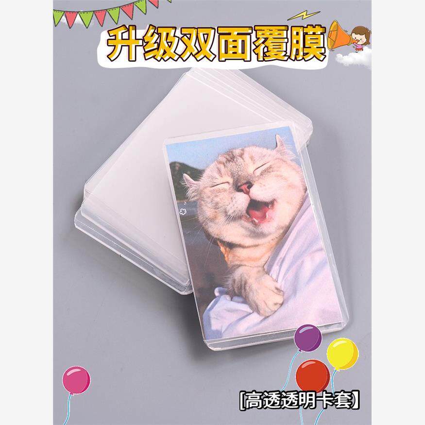 B8硬卡套高清双面透明ins风加厚横版防水咕卡套封口卡膜拍立得3寸