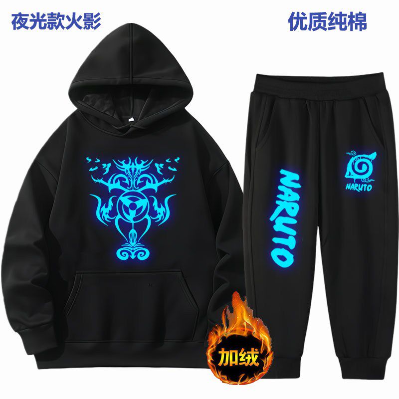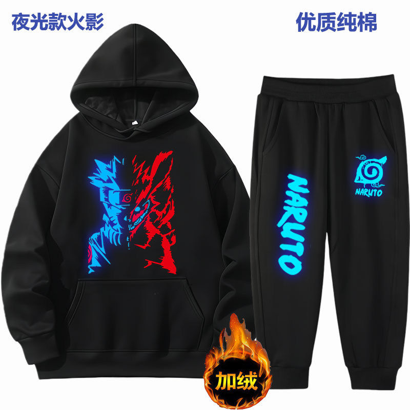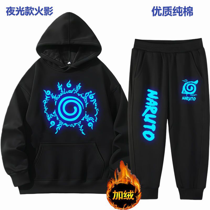 火影忍者连帽加绒卫衣套装12青少年13初中学生14男孩15岁中大童16