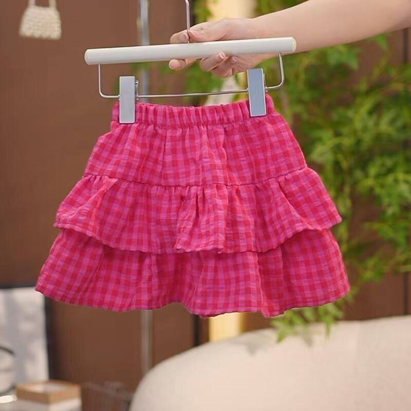 女童夏装薄款洋气时尚套装2026新款儿童网红爆款格子裙子两件套