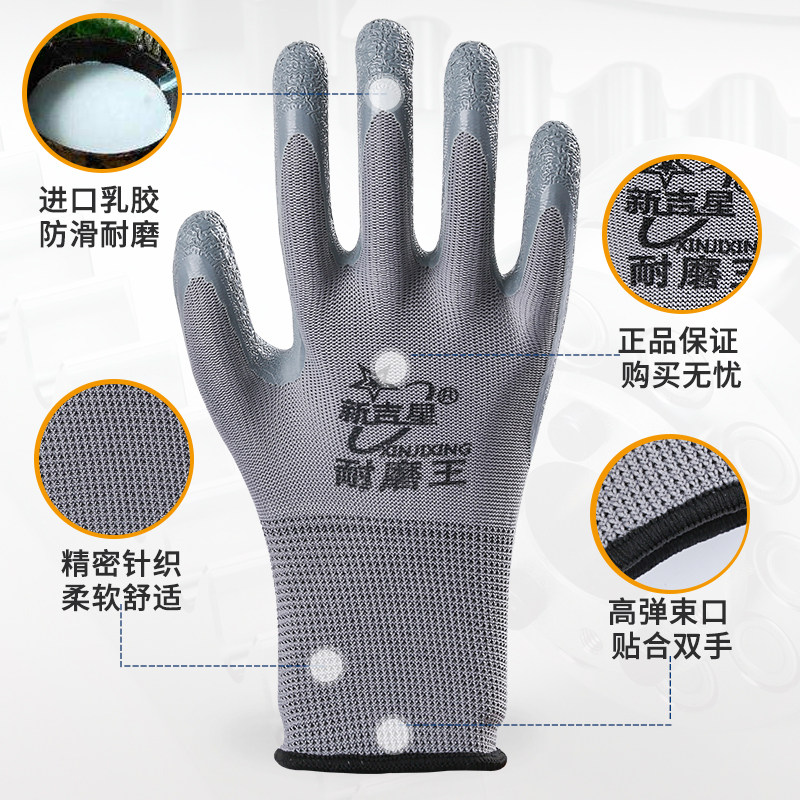 新吉星手套劳保耐磨王工作干活带胶皮防滑加厚皱纹浸挂.橡胶手套