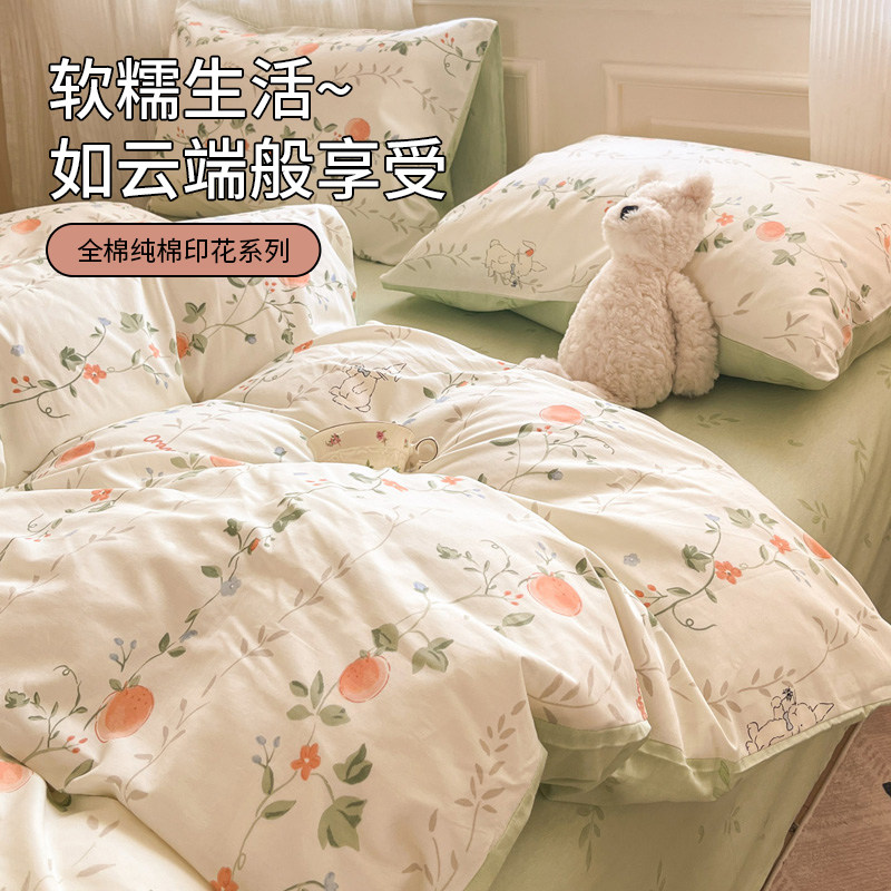 无印良品全棉2026新款床上四件套小清新纯棉被套宿舍床单床笠床品