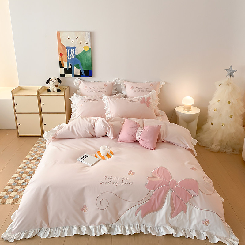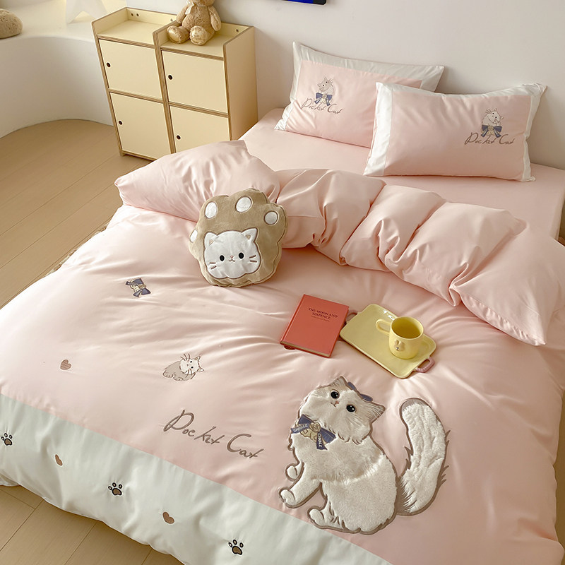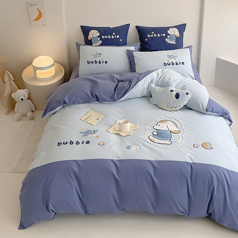 春夏全棉水洗棉毛巾刺绣卡通男孩女孩四件套纯棉公主可爱床上用品