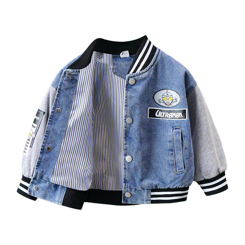 儿童奥特曼外套2025新款春秋装中小童拼接棒球服男童春款牛仔上衣