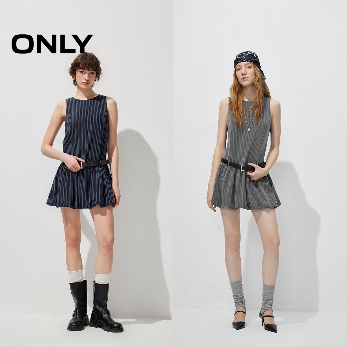 ONLY2026春季新款显瘦复古胯间拼接腰带背心廓形蓬蓬裙连衣裙女