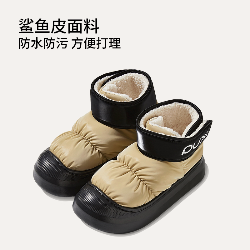 朴西儿童棉拖鞋冬季防水防滑厚底保暖加绒魔术贴雪地靴增高棉鞋