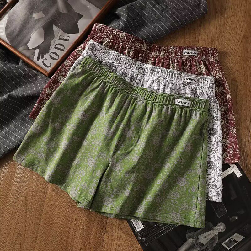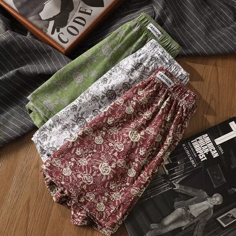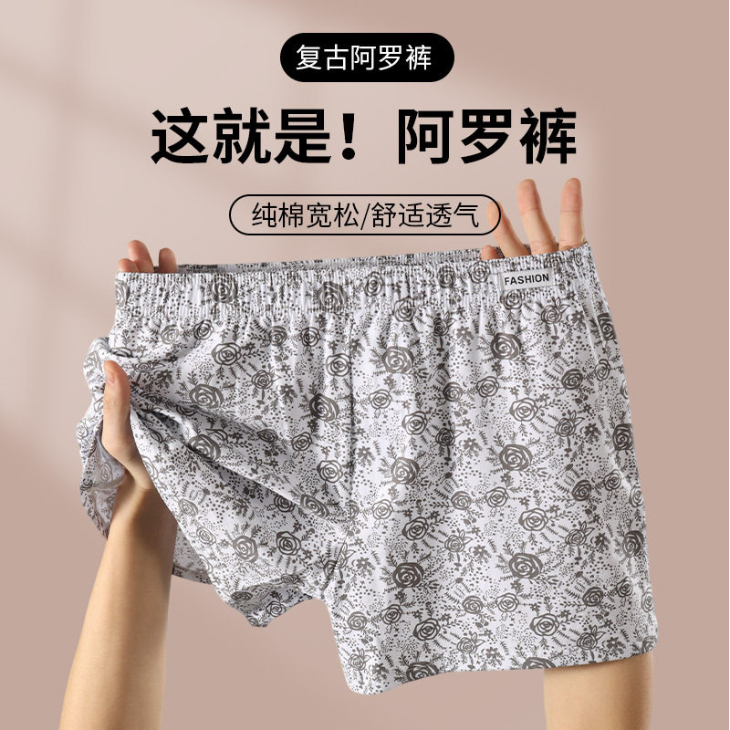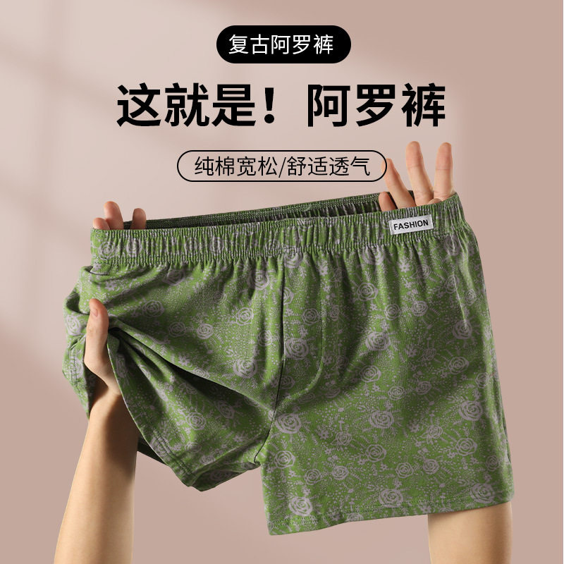 男士内裤纯棉透气阿罗裤宽松睡裤男款大码印花平角短裤头2026新款