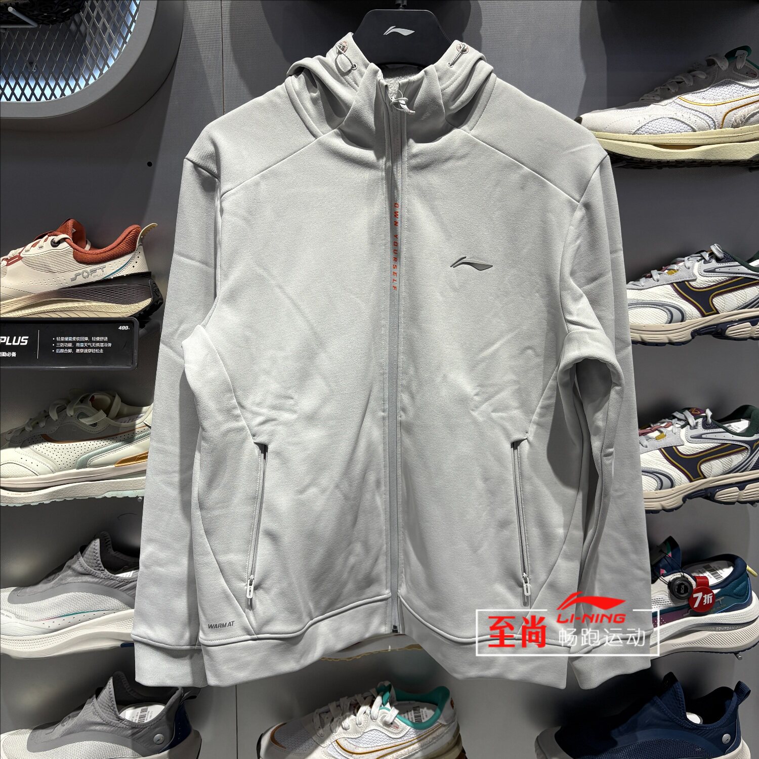李宁外套男士2024冬季健身系列加绒保暖反光连帽运动卫衣AWDU577