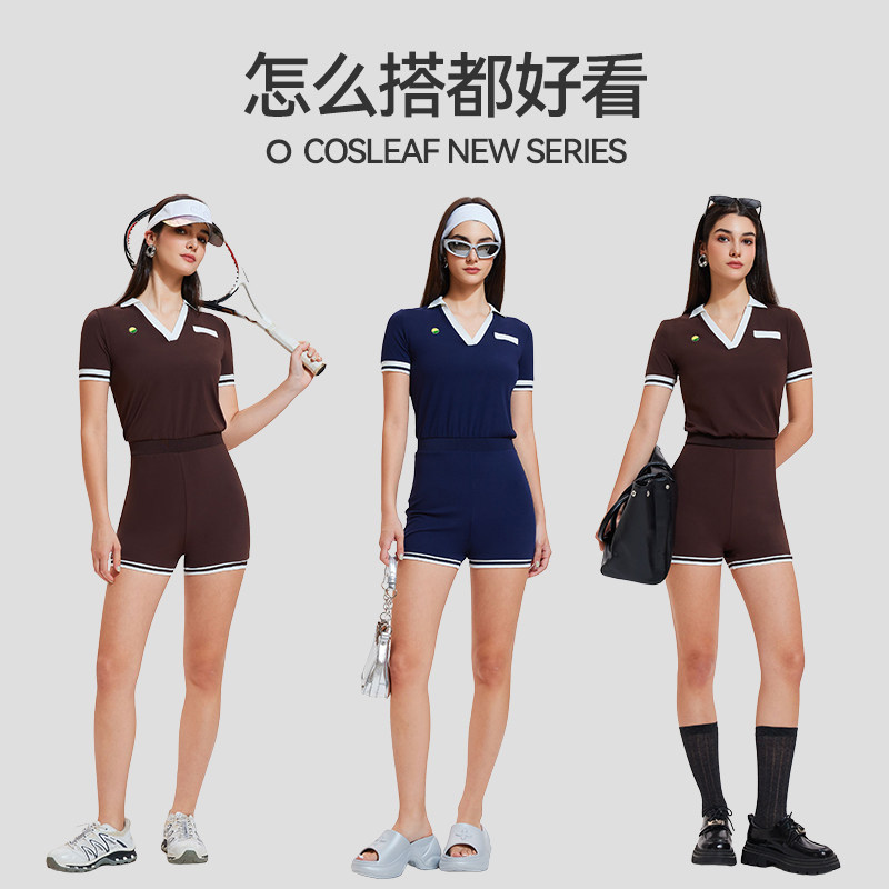 科里芙运动网球服女夏跑步短袖短裤连体服修身显瘦羽毛球健身套装