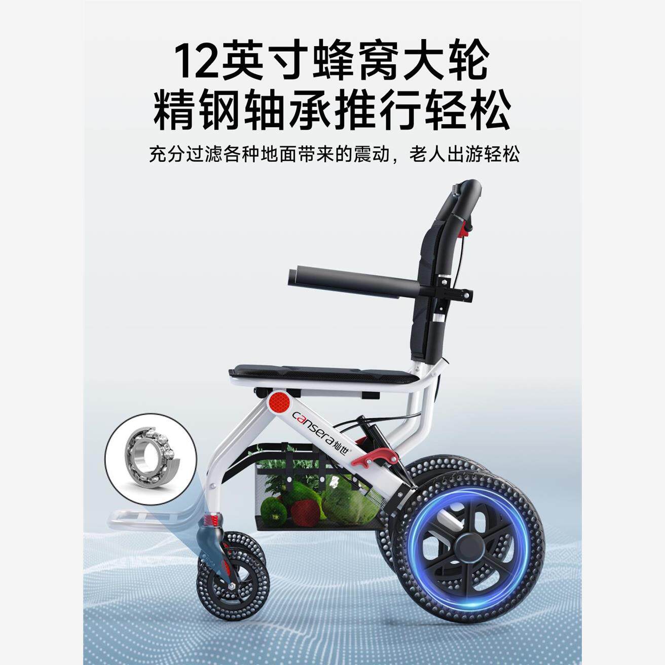 灿世轮椅超轻便折叠老年人专用出行购物助行便携式小型手推代步车