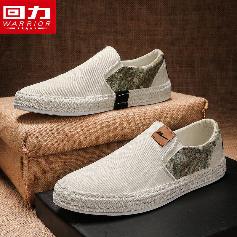 回力男鞋夏季透气一脚蹬帆布鞋千层底板鞋休闲开车耐磨老北京布鞋
