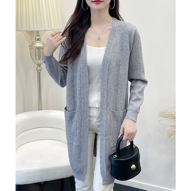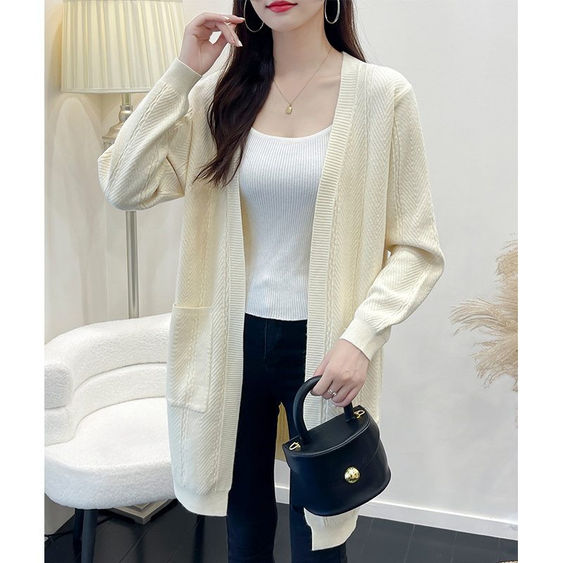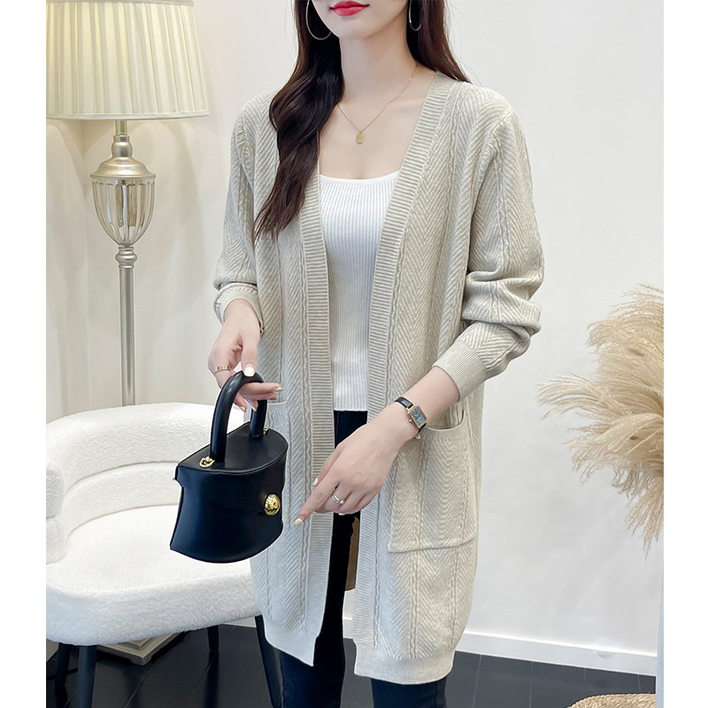 针织开衫春款2026新款女装外搭上衣女中长款过膝大码外穿毛衣外套
