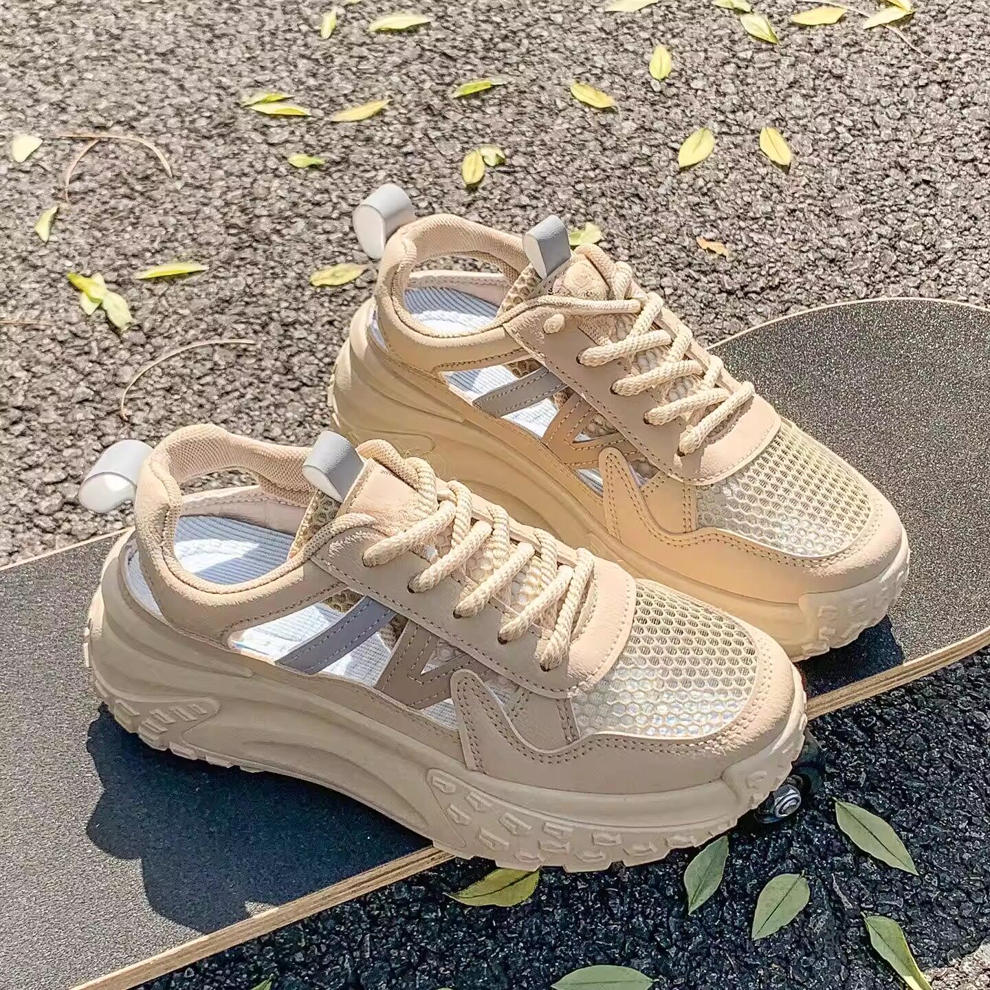 网面透气不累脚运动凉鞋女鞋夏季薄款网鞋镂空厚底子透气软底运动