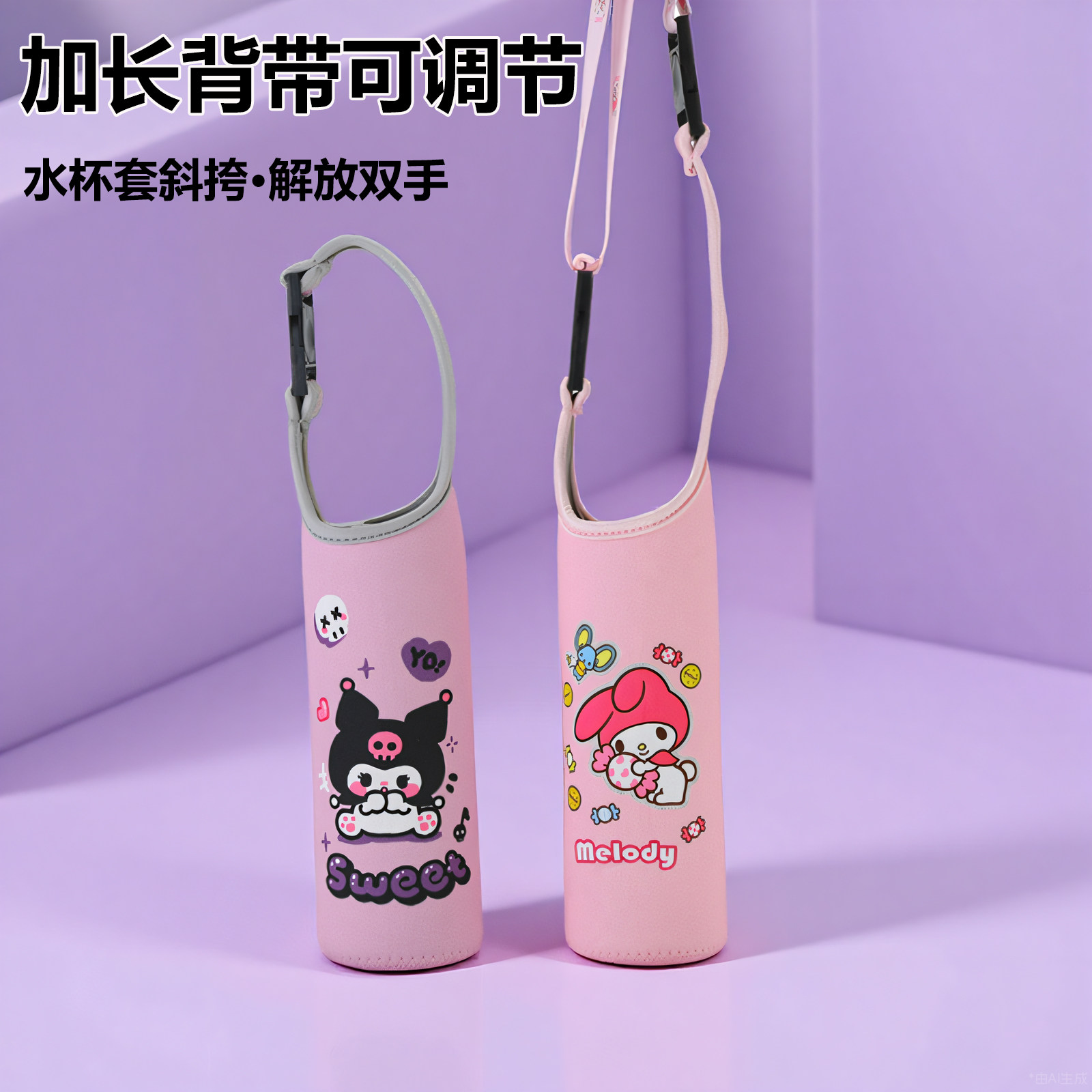 便携式保温杯套长背带斜跨儿童隔热防摔水杯套保护套350-500毫升