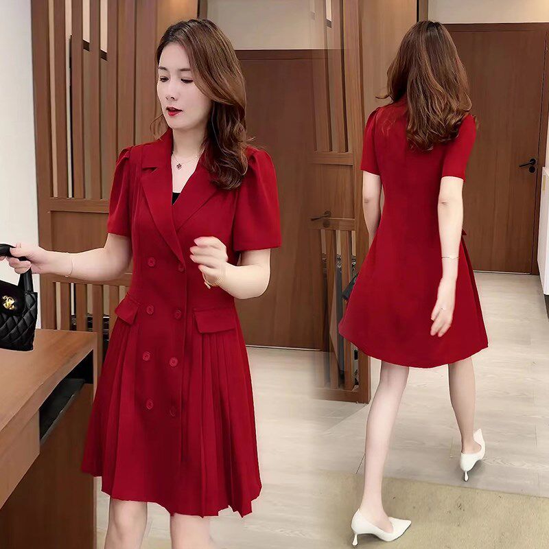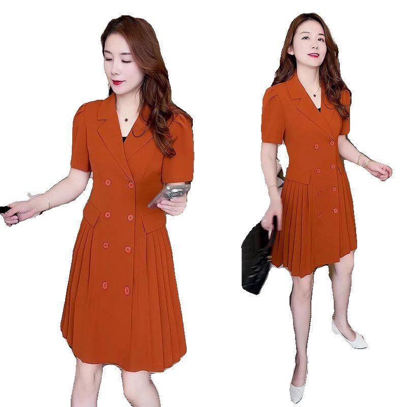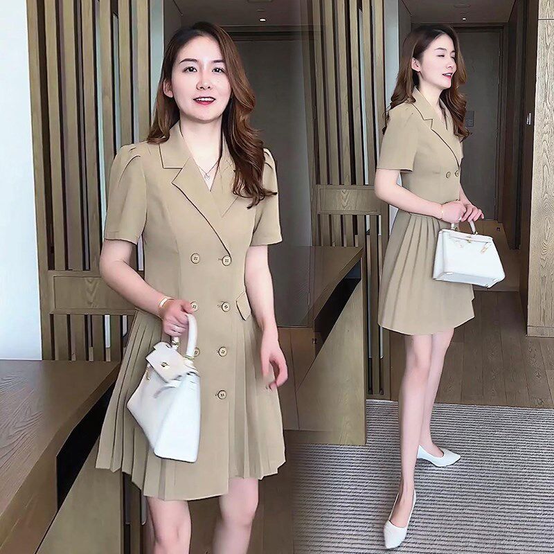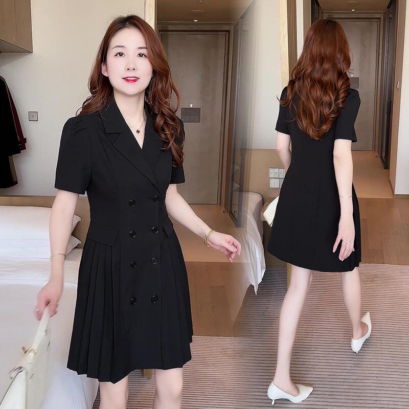 短袖西装连衣裙女夏季2025新款小个子中长款时尚气质修身职业裙子