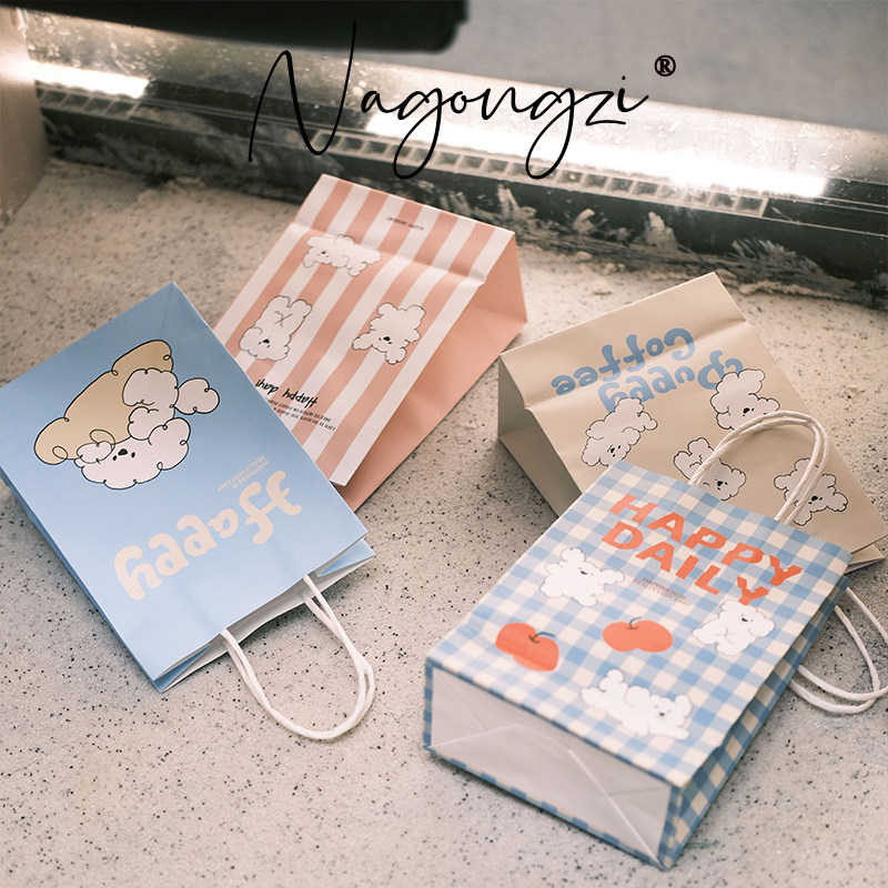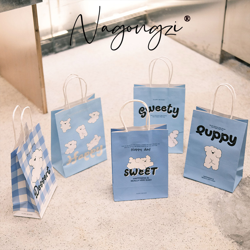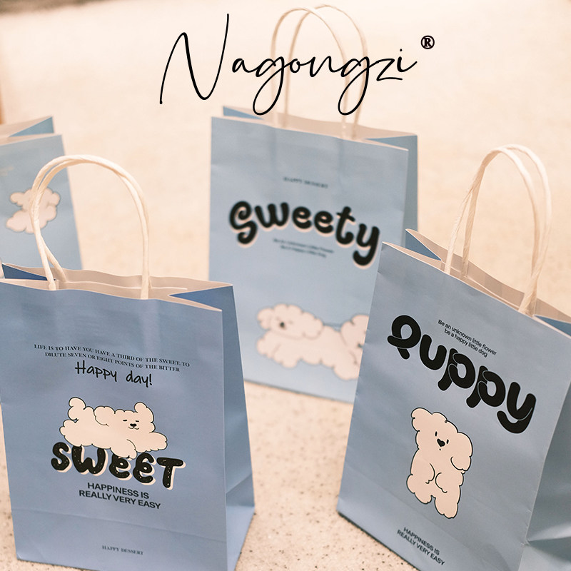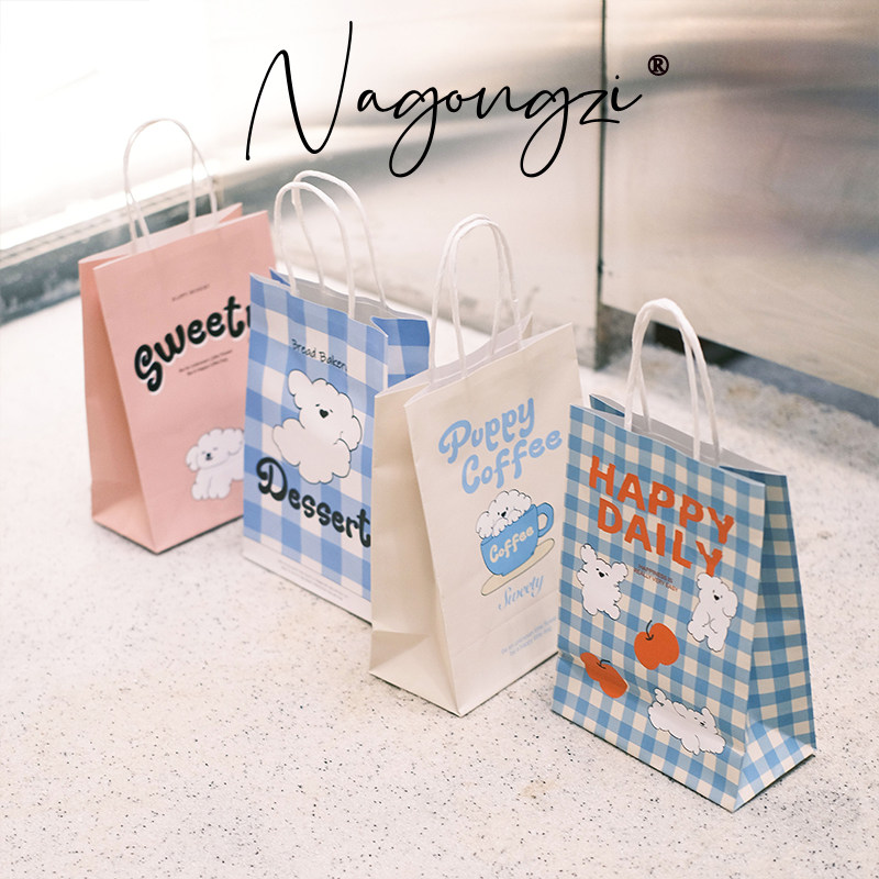 puppy系烘焙手提袋甜品打包袋定制面包蛋糕店外卖小袋子牛皮纸袋