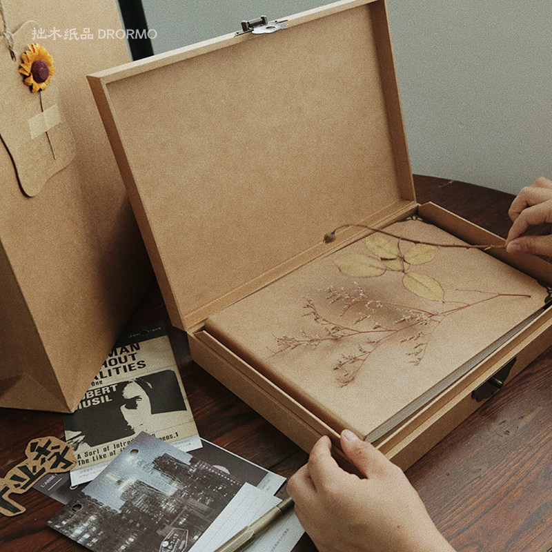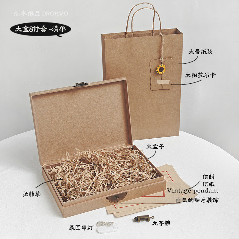 大号复古盒子 个性空白牛皮纸盒怀旧收纳相册茶叶盒子礼品包装盒