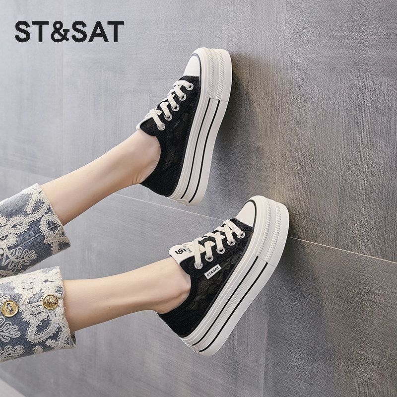 星期六厚底小香风小白鞋女新款夏季板鞋网鞋透气薄款网面帆布爆款