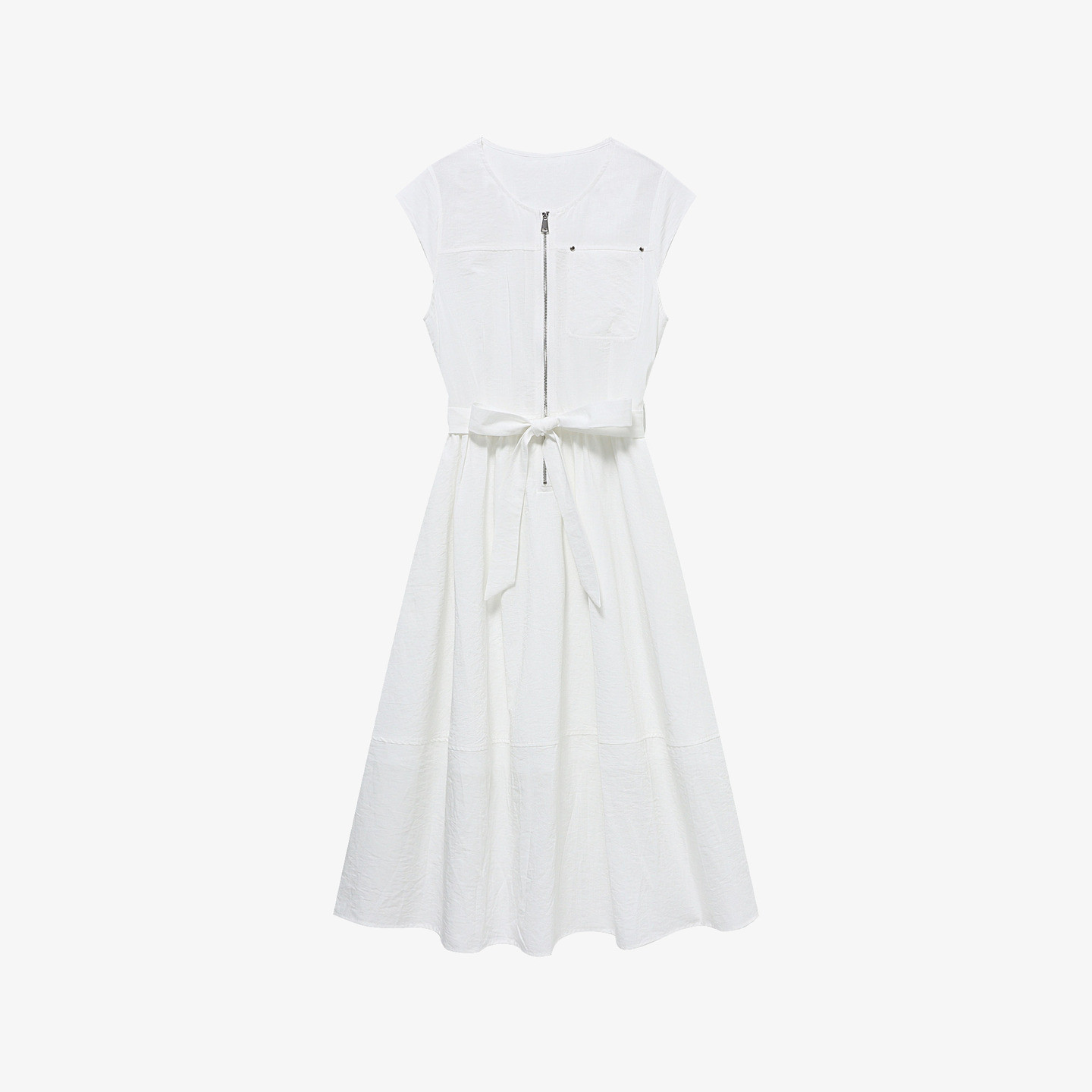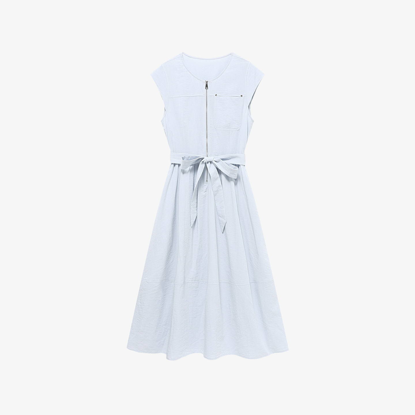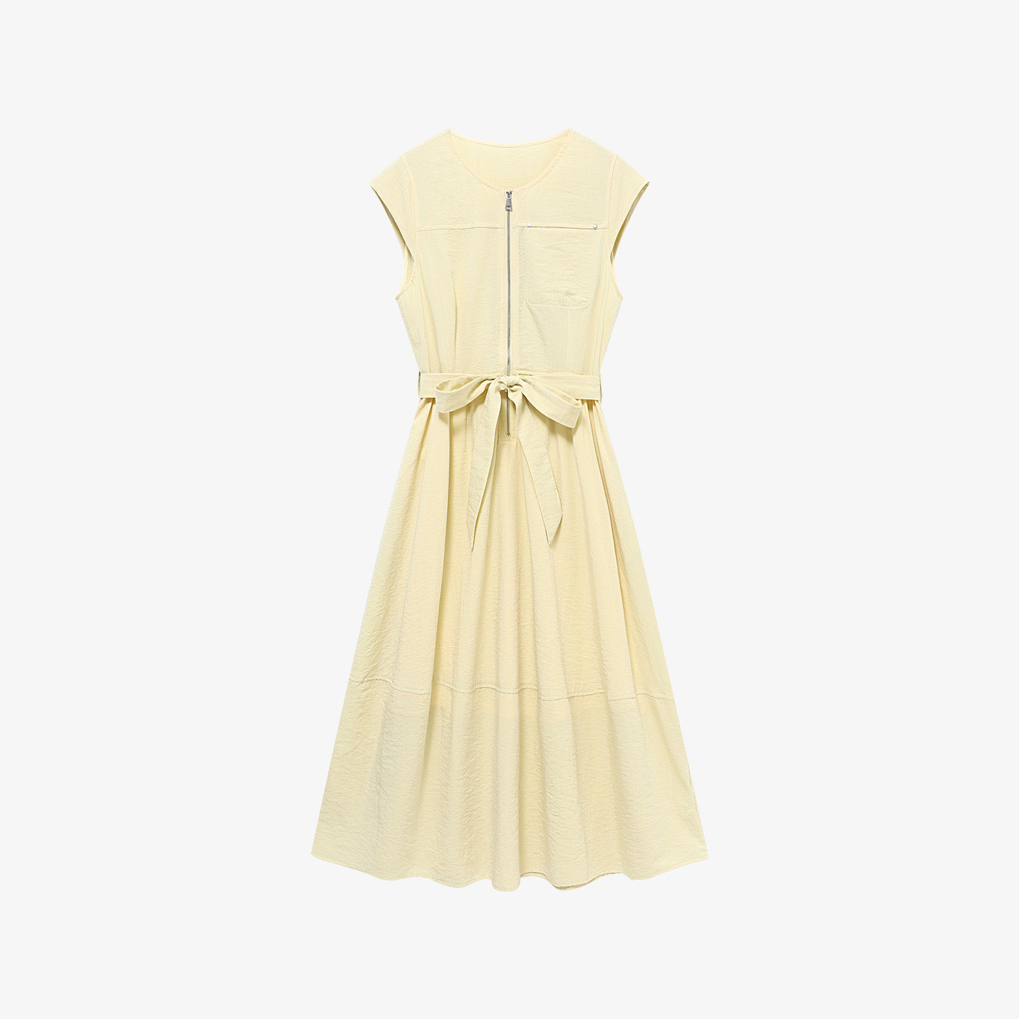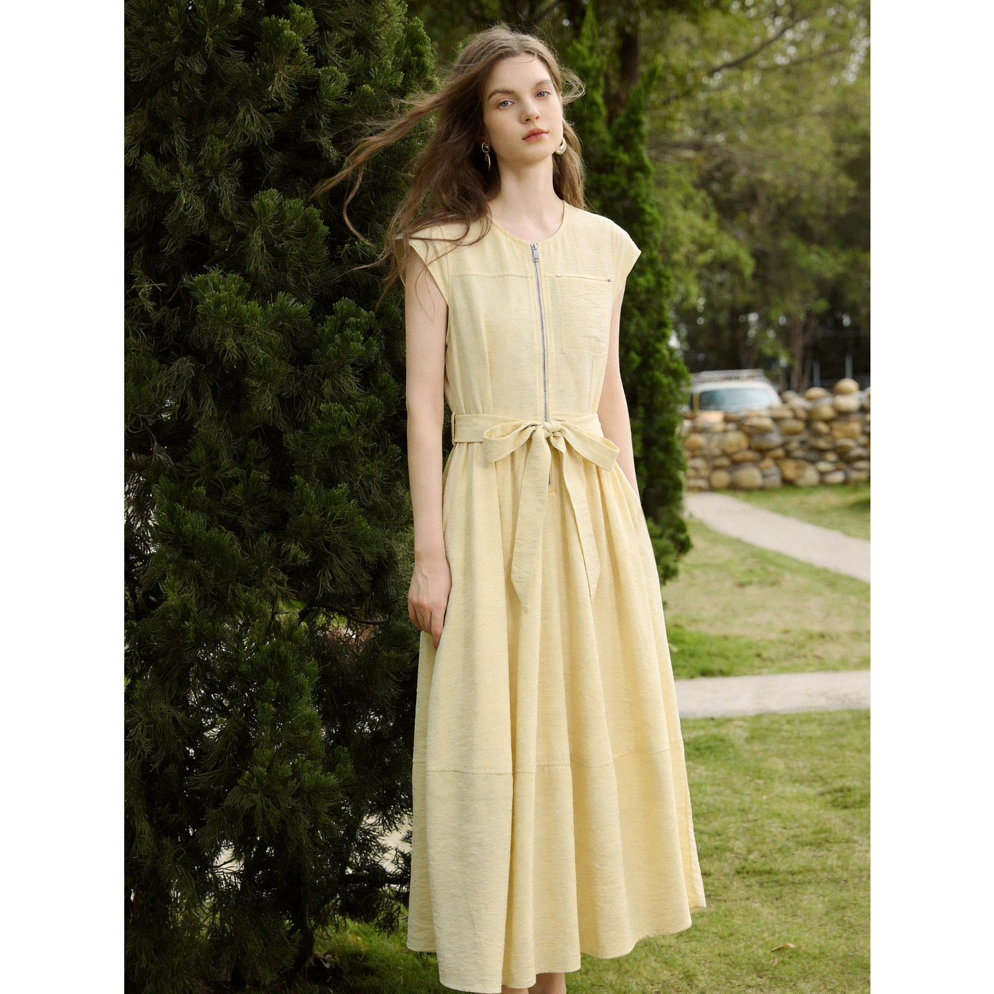 百家好法式飞袖日常通勤连衣裙女2026夏季系带收腰显瘦气质中长裙