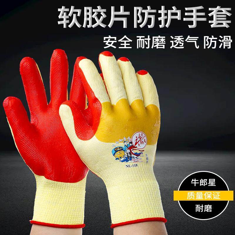 正品牛郎星劳保手套工作耐磨加厚橡胶手套底片防滑防割胶皮工地业