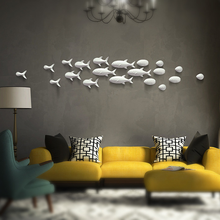 壁饰背景立体墙饰现代简约小鱼创意装饰壁挂客厅玄关酒店墙面挂饰