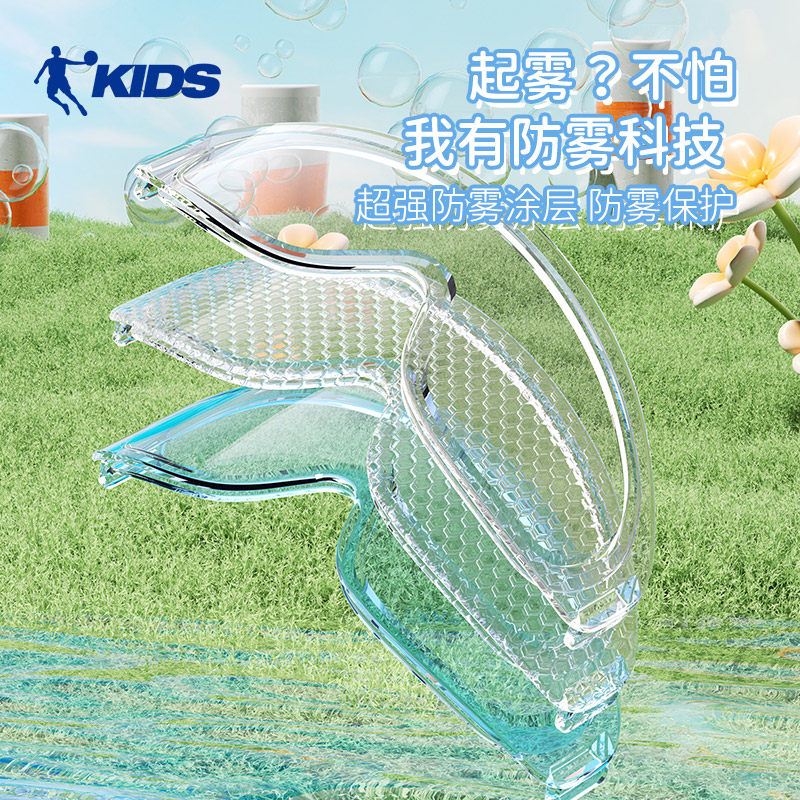 乔丹官方正品儿童大框泳镜防水防雾高清新款海边游泳温泉泳帽套装