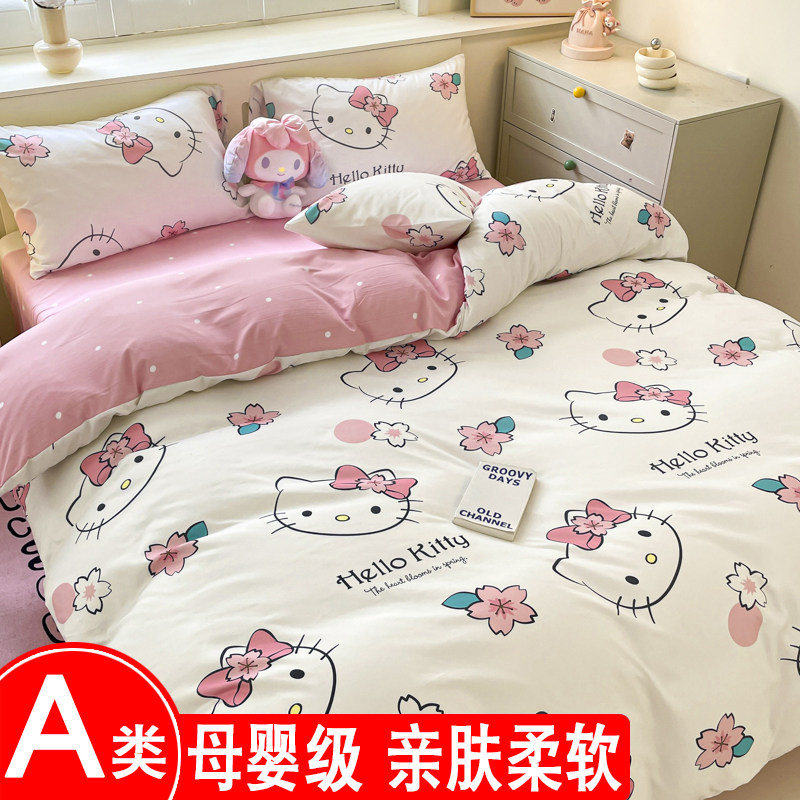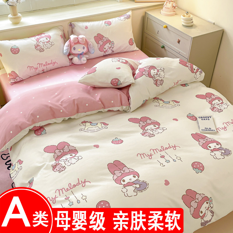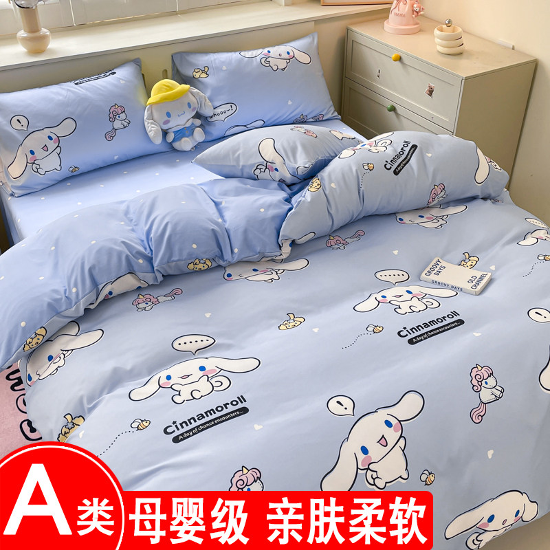 A类库洛米四件套全棉纯棉感儿童被套床单宿舍三件套床笠女孩床品