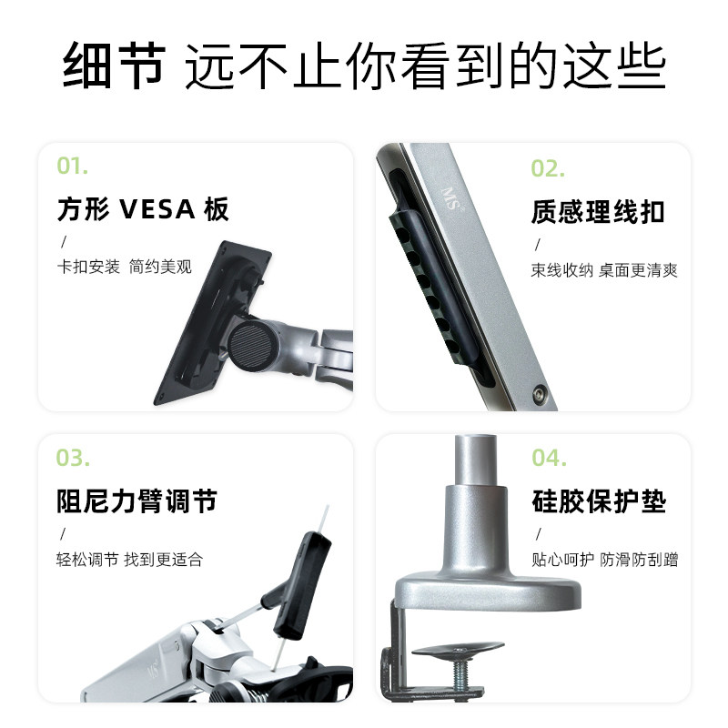 MS电脑显示器支架机械臂电脑升降便携显示屏悬臂支架vesa孔台桌夹