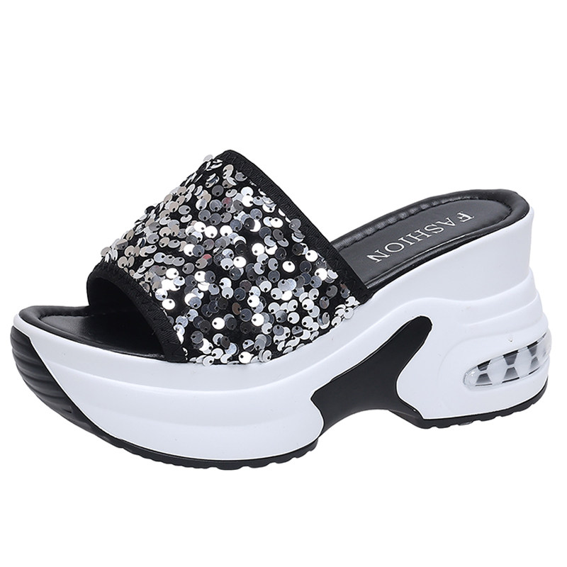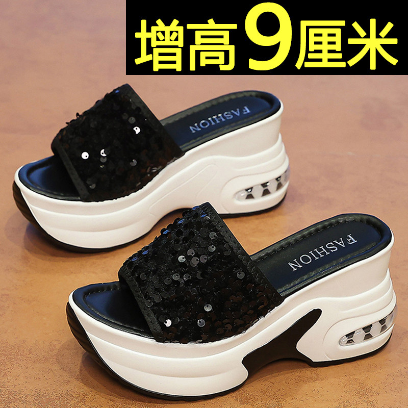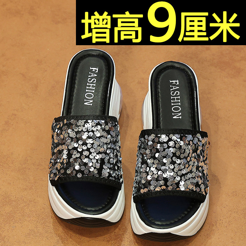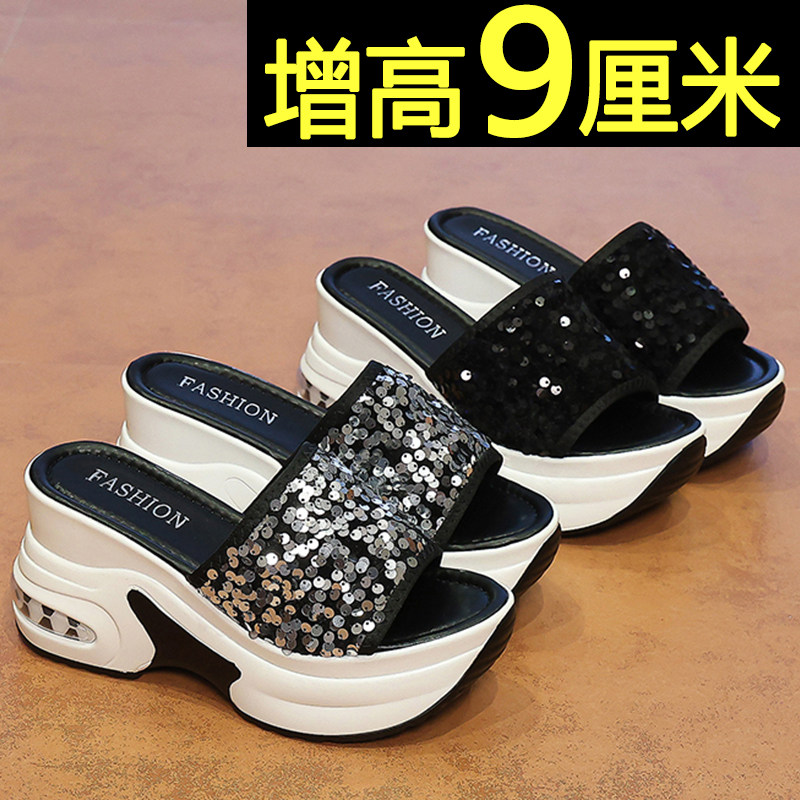 9cm厚底增高亮片拖鞋女外穿2026新款夏季配裙子百搭不累脚凉拖鞋