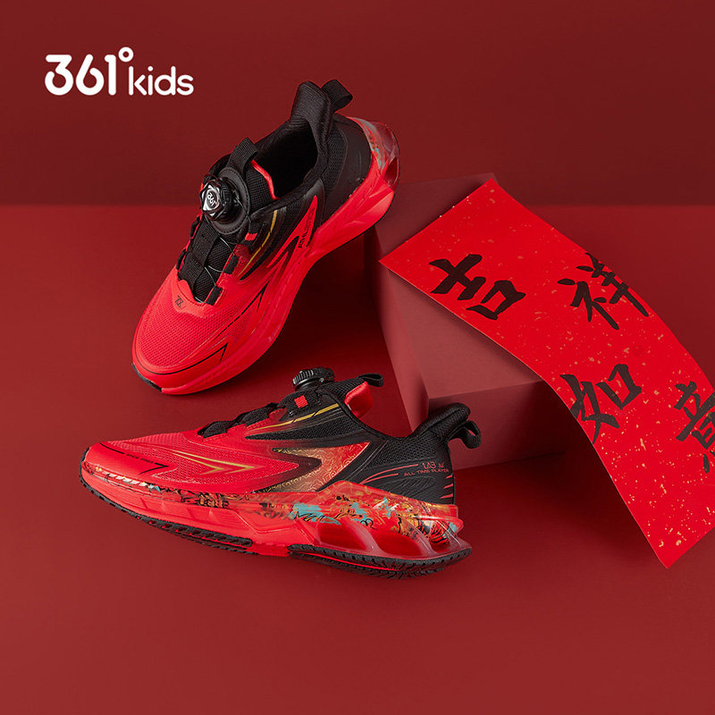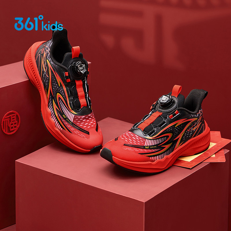 新年361童鞋男童2026红色加绒运动鞋儿童本命年男孩青少年跑步鞋