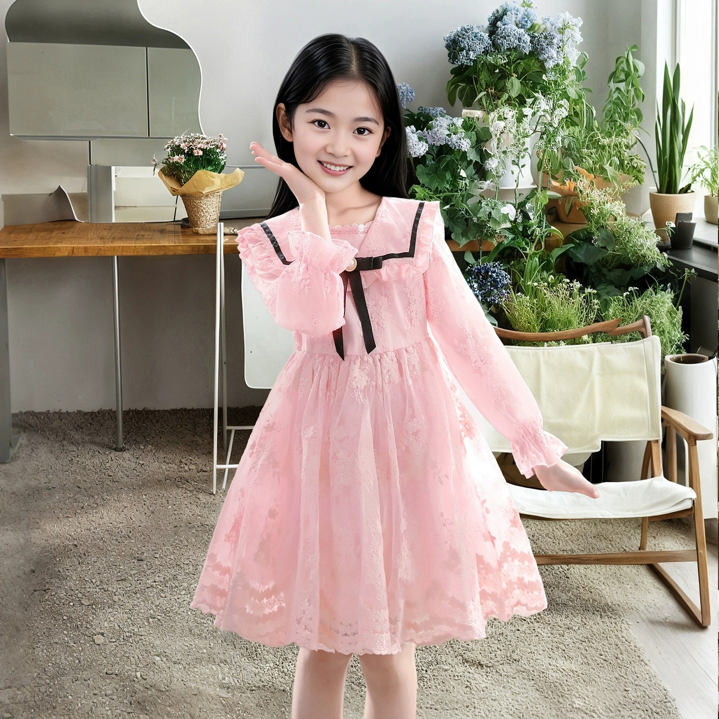 女童连衣裙春季2026新款洋气儿童蕾丝网纱裙小女孩冬款加绒公主裙