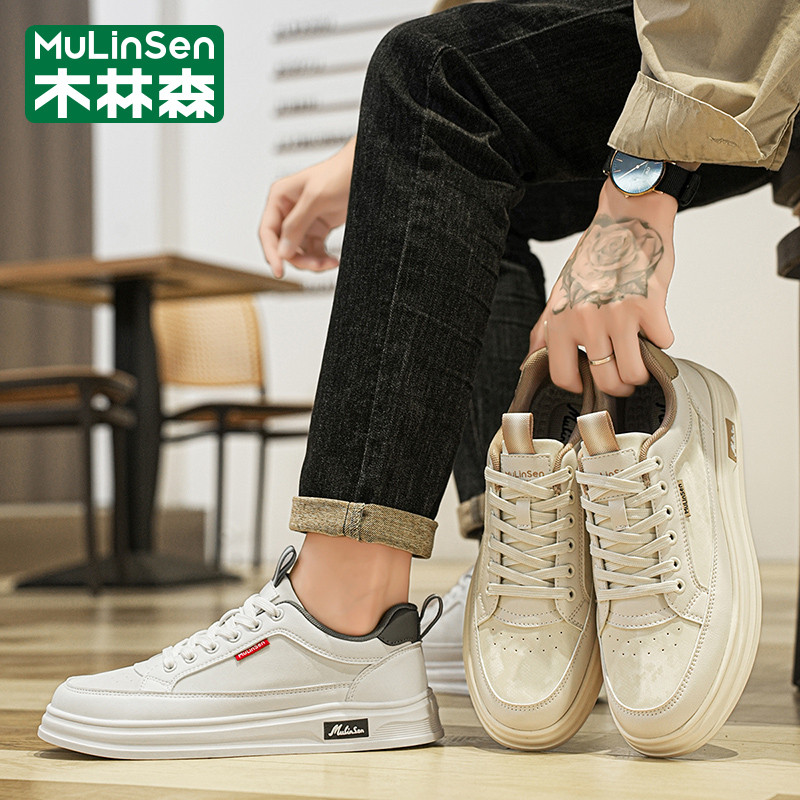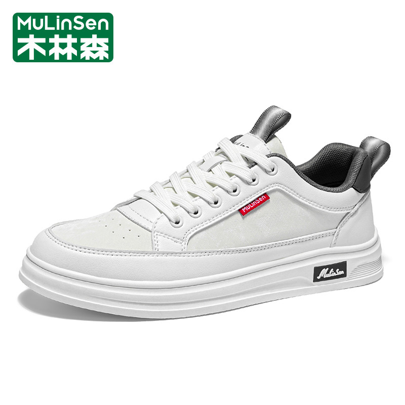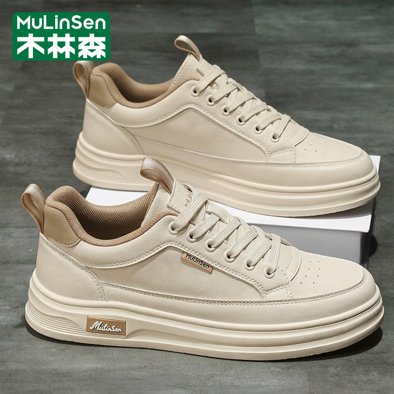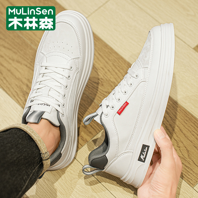 木林森男鞋2026年新款春季潮牌运动休闲软底防滑小白皮面防水板鞋