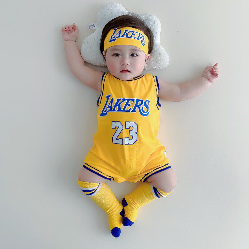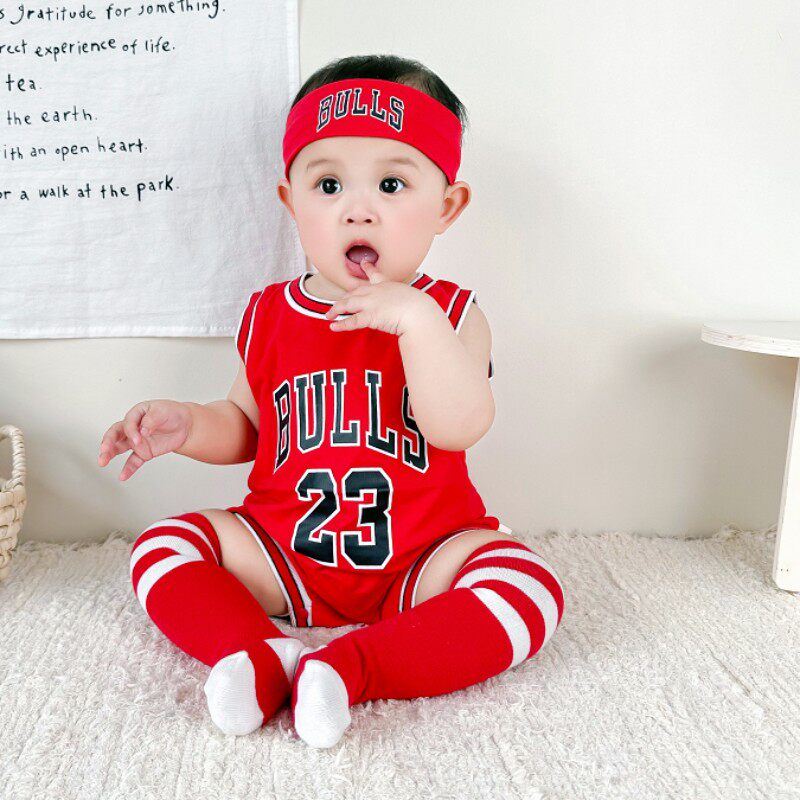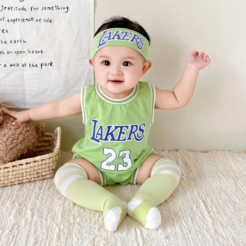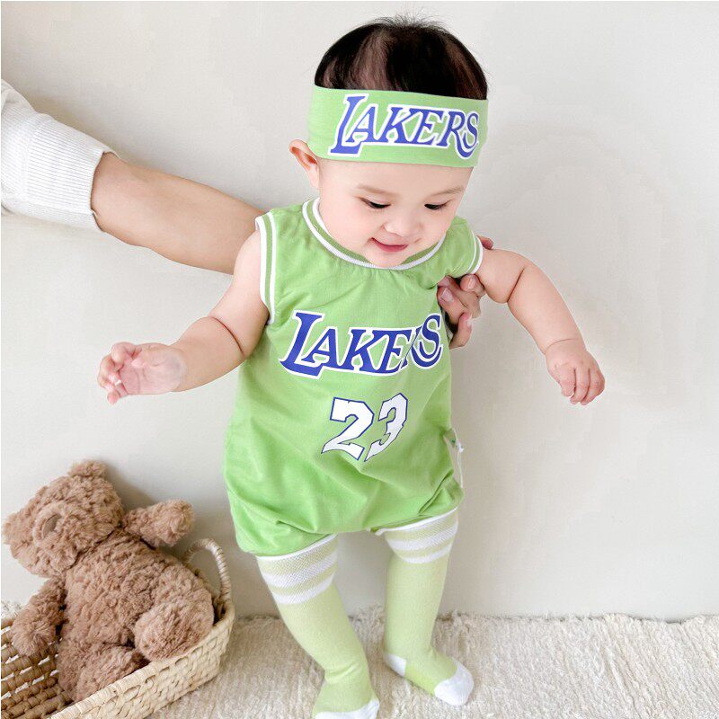婴儿夏装背心球衣套装男女宝宝纯棉篮球服连体衣运动哈衣无袖薄款