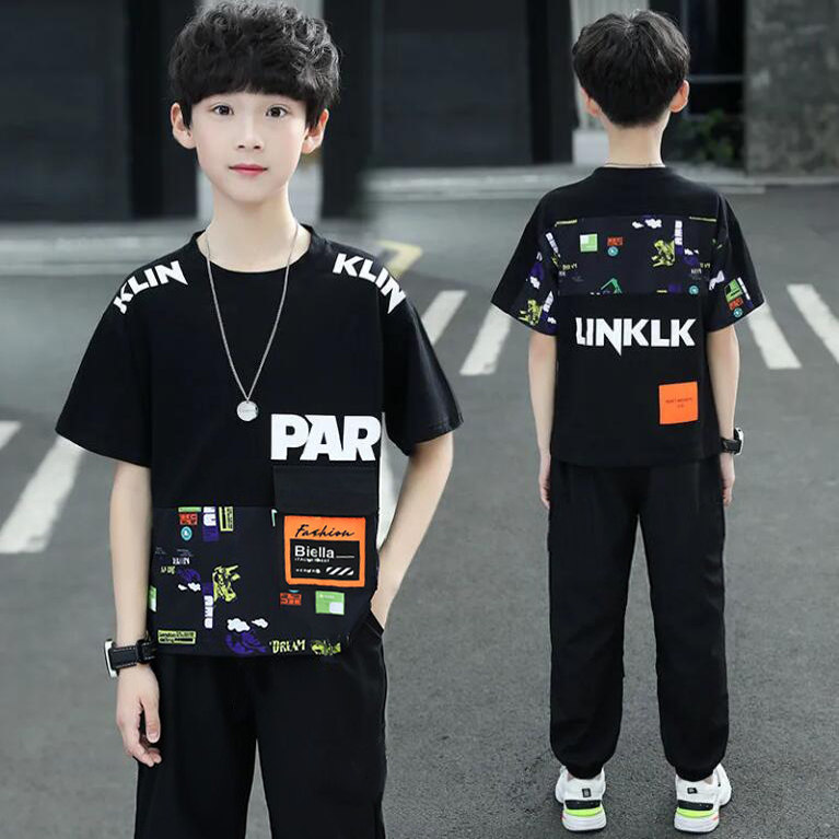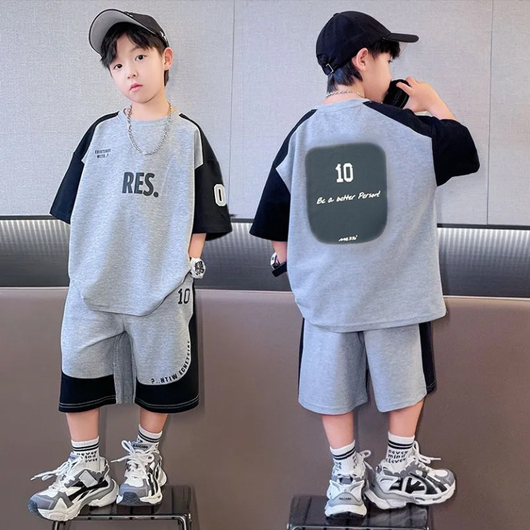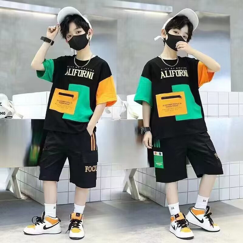 男童夏季套装2026新款儿童夏装运动中大童渐变短袖韩版酷帅两件套