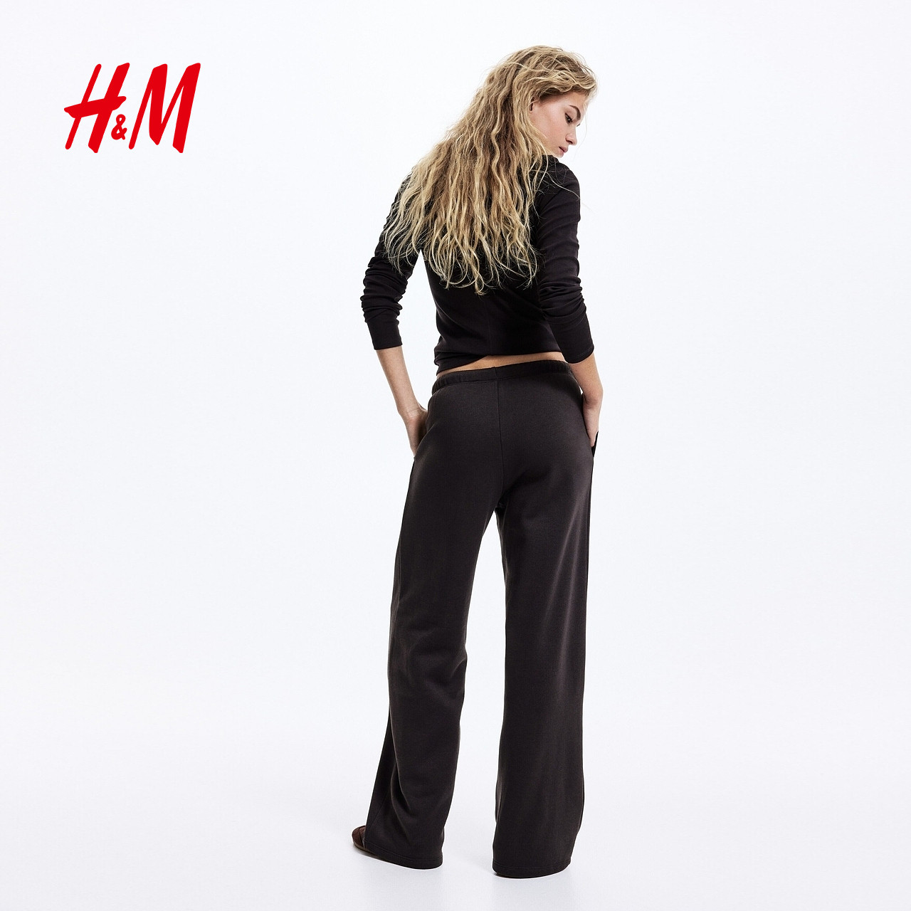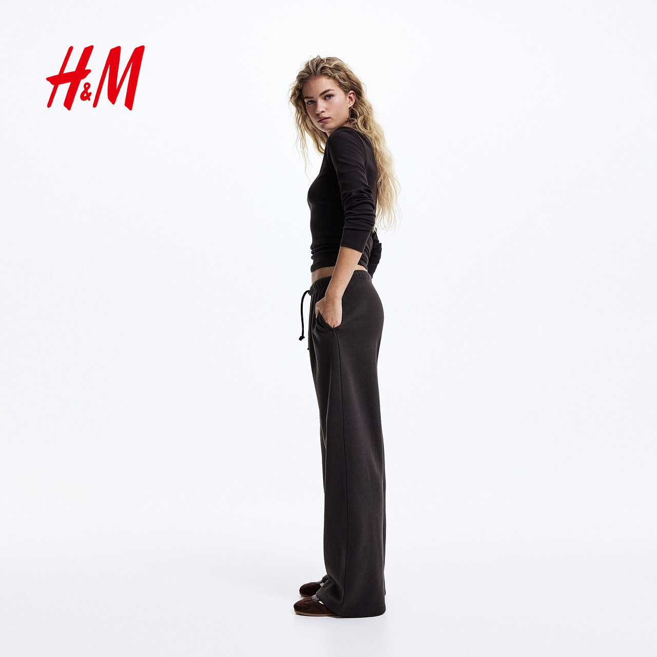 HM女装裤子2026春季新款梧桐裤阔腿宽松慢跑裤通勤卫裤1199249
