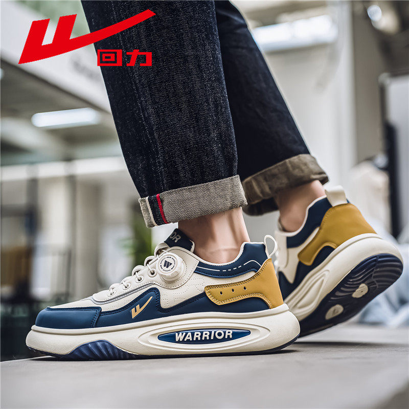 回力旋转纽扣男鞋春季2026新款男士休闲运动鞋厚底无鞋带百搭板鞋