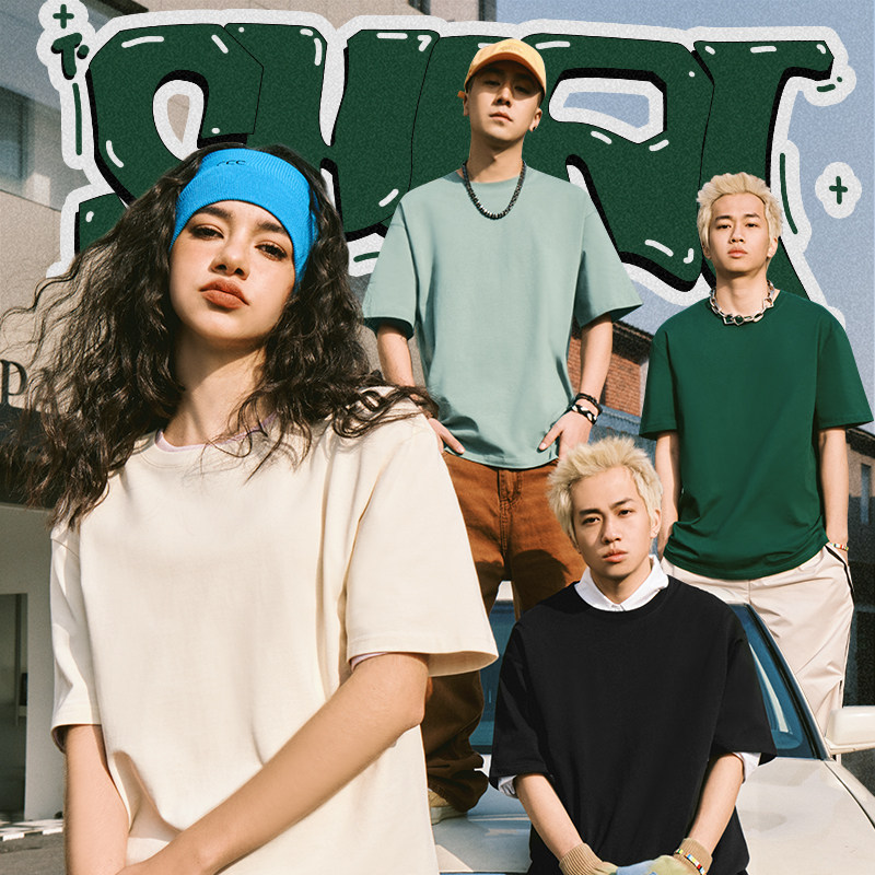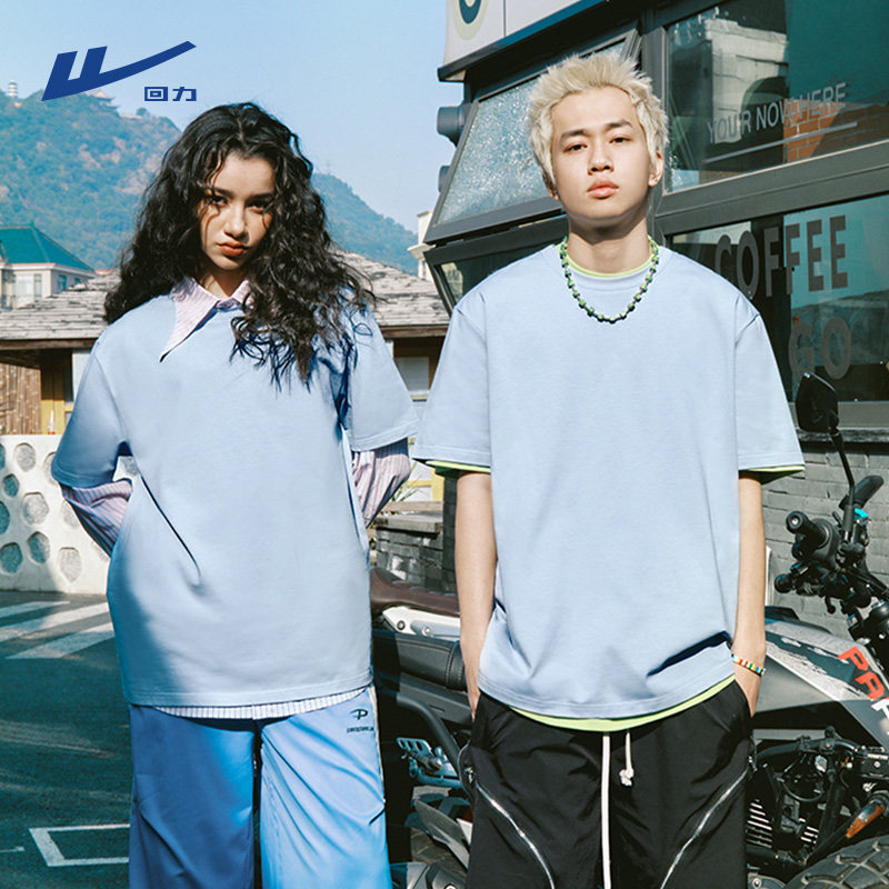 回力短袖男款夏季潮牌美式宽松大码半袖青少年纯棉重磅正肩T恤潮