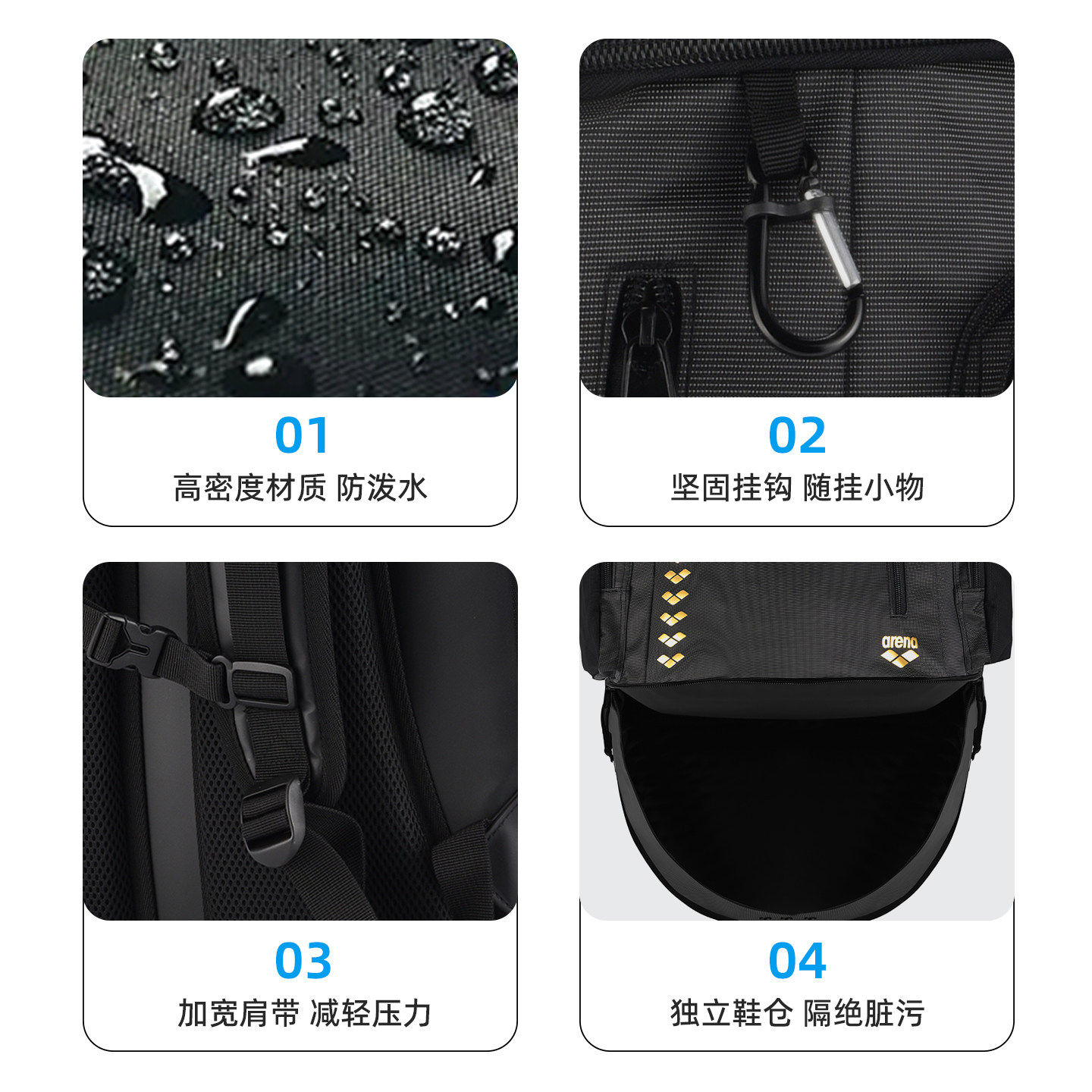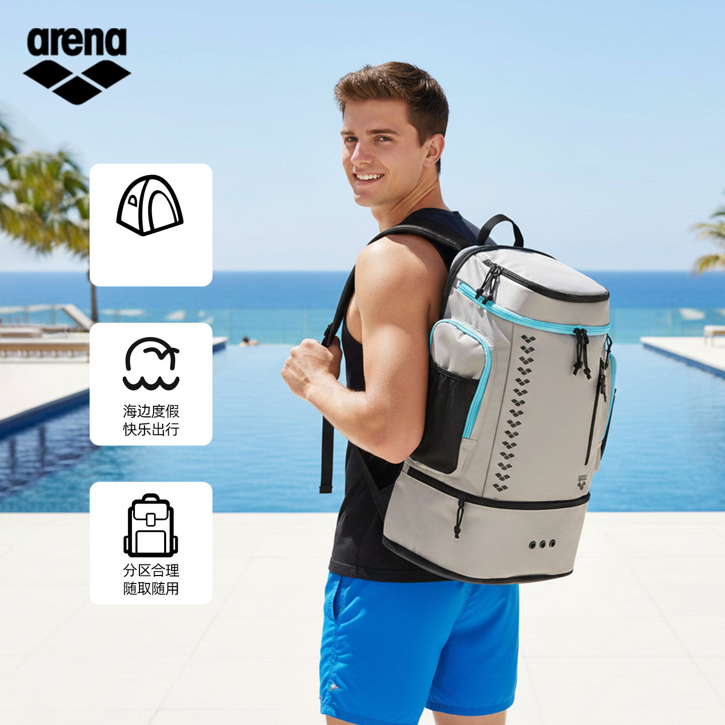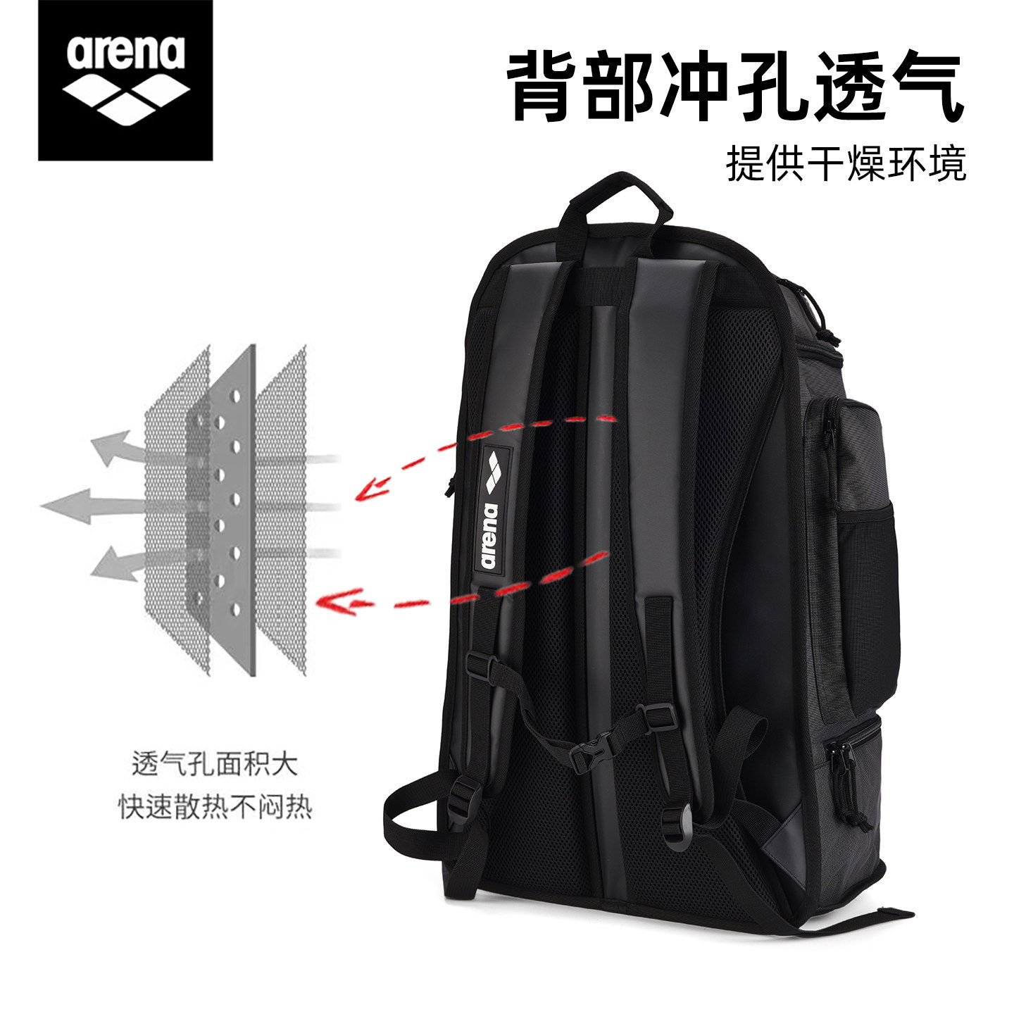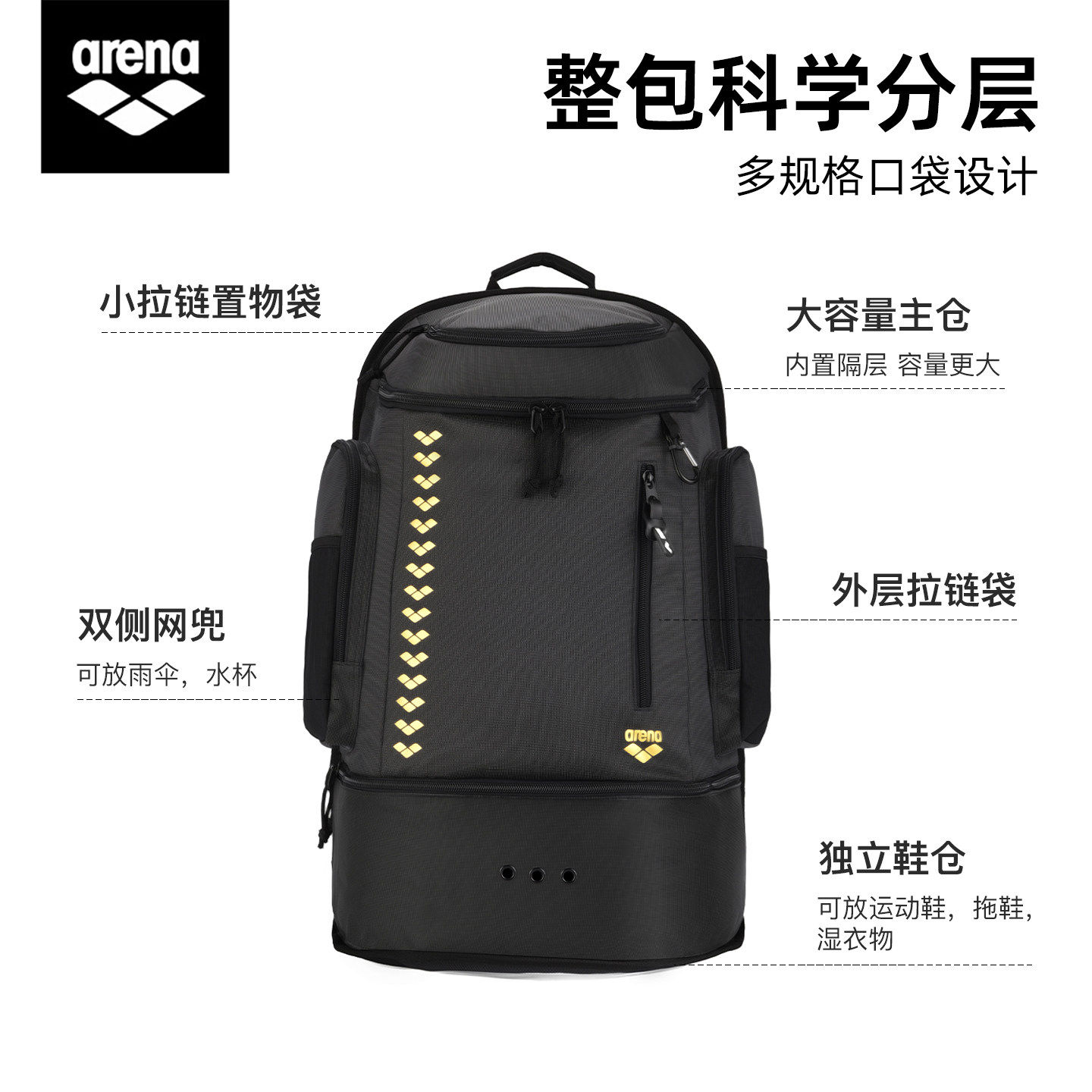 arena阿瑞娜游泳包干湿分离双肩包大容量55L户外运动背包2026新品