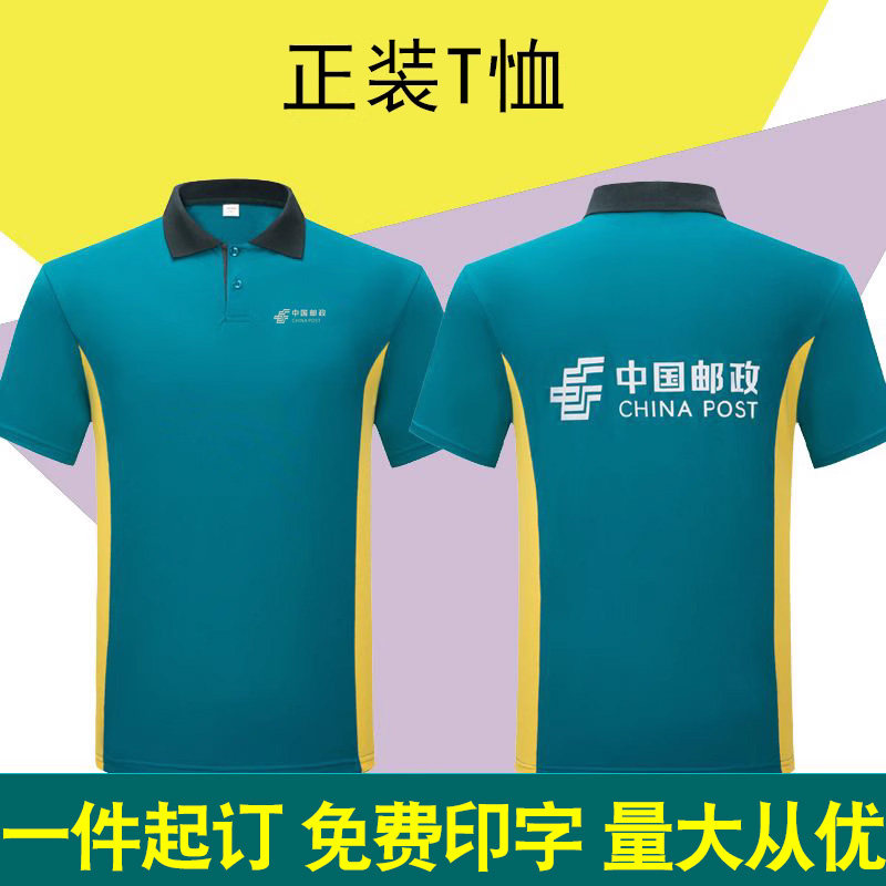 中国邮政工作服正装订做夏季快递员工装物流公司短袖T恤定制刺绣