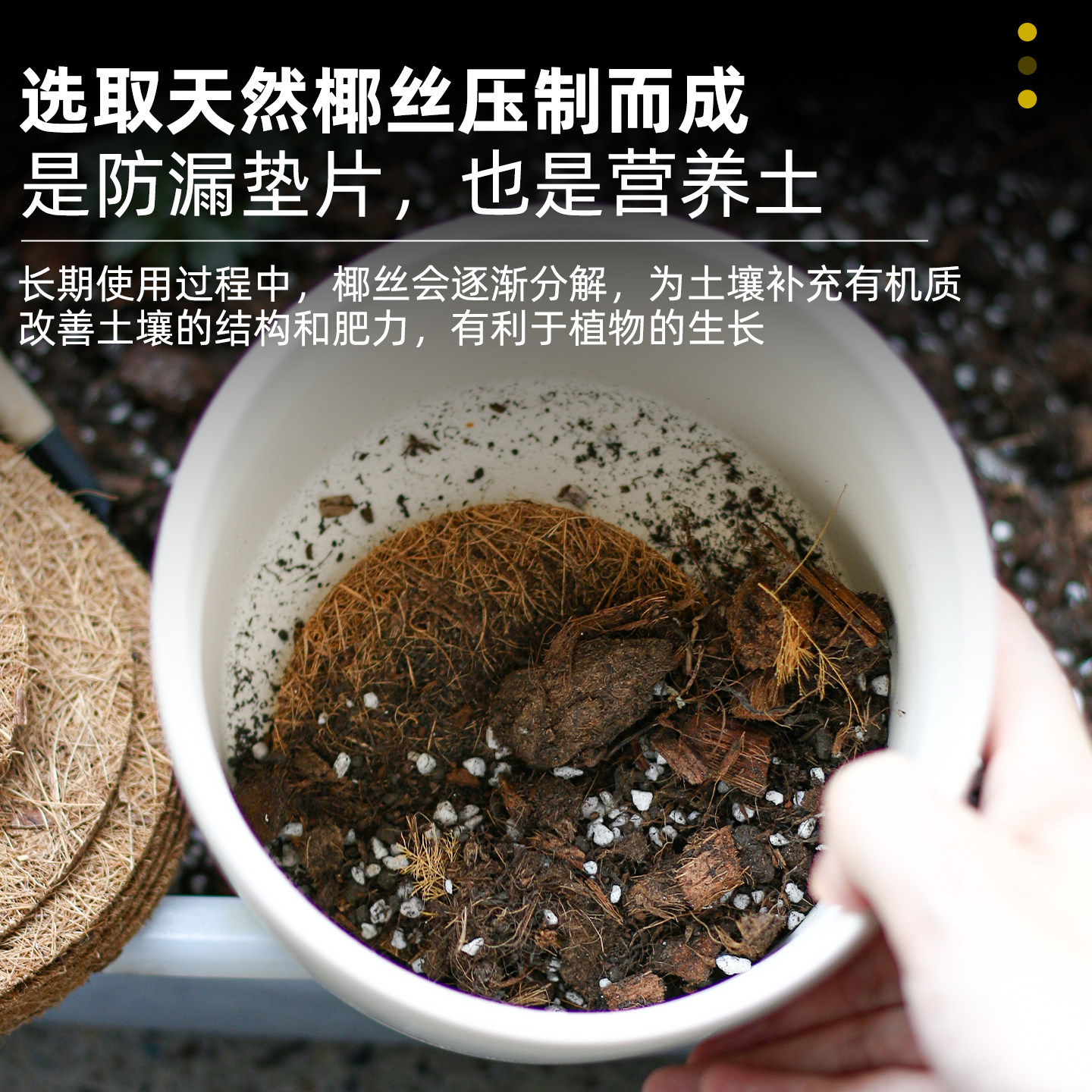 花盆底孔垫片椰丝垫网盆栽盆景底部透气垫高垫片沥水垫园艺防漏土
