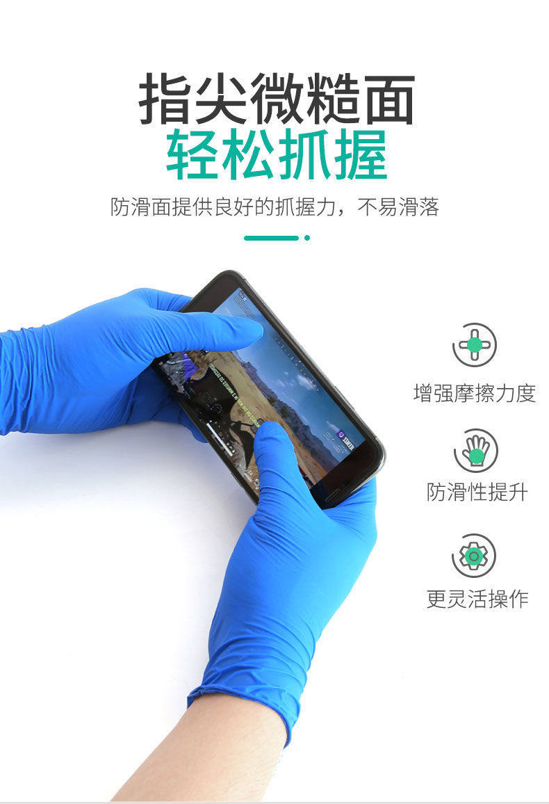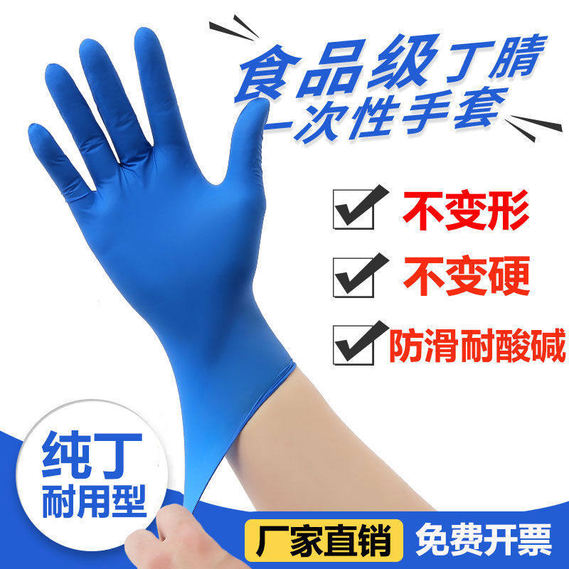 一次性高弹纯丁腈蓝手套乳胶橡胶加厚耐用防油耐酸碱餐饮美发工业
